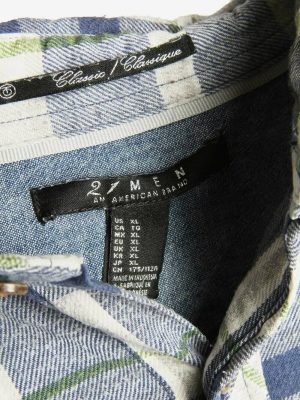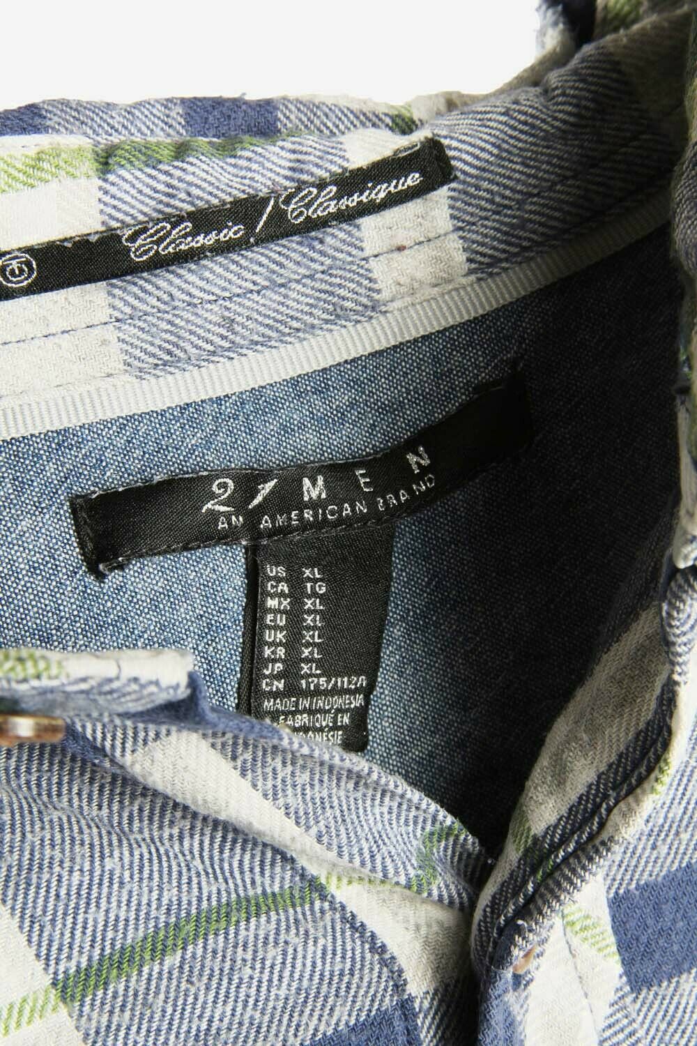 21 Men Flannel Shirt Check Vintage Long Sleeve 90s Retro Cotton Size XL