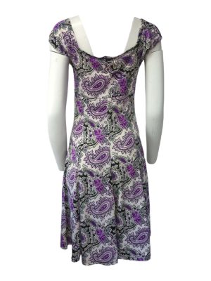 80s Vintage Dress Floral Tea Flared Summer Day Off Shoulder Dress Size M