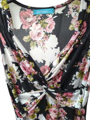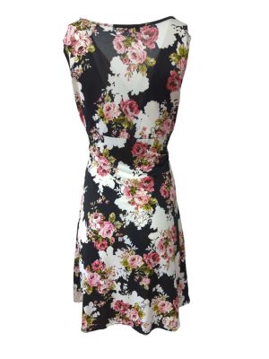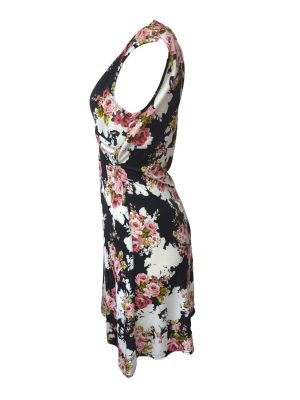 A-Line Dress Floral Self-Tie Plunge-V Printed Sleeveless Midi Size S/M