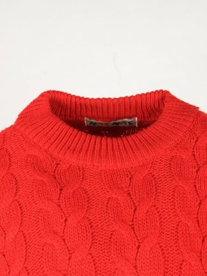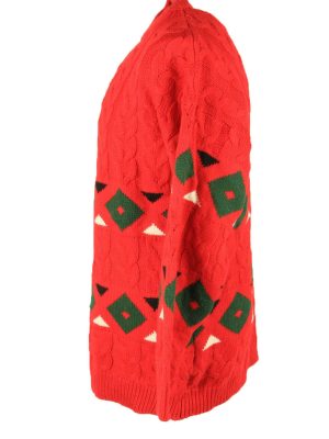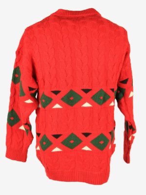 Naf Naf Vintage Wool Jumper Cable Knit Crew Neck 90s Red L