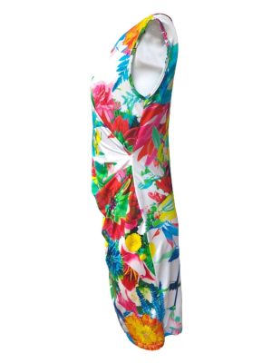 Bodycon Evening Dress Floral Wrap Effect Draped Front Summer Size L/XL
