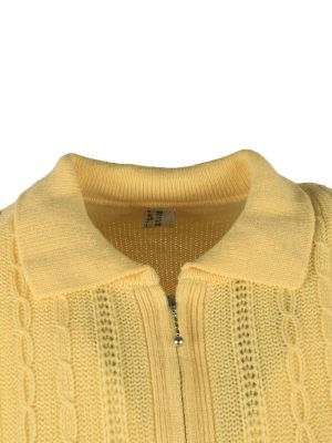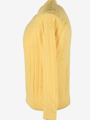 Cable Knit Jumper Vintage Collared Neck Pullover 90s Yellow Size S