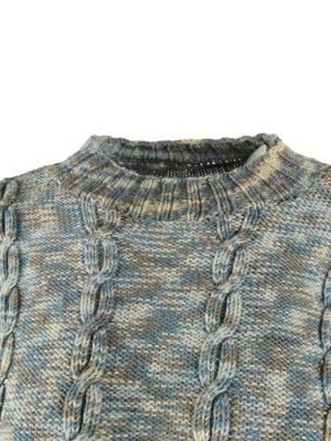 Cable Knit Vintage Jumper High Neck Winter Country 90s Blue Size M