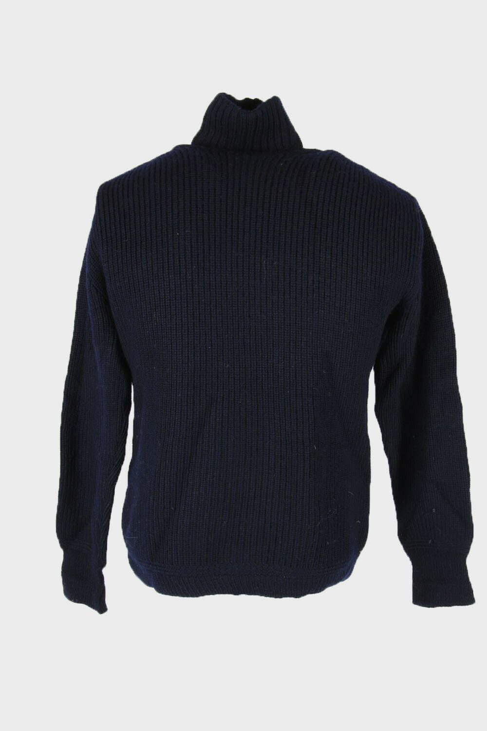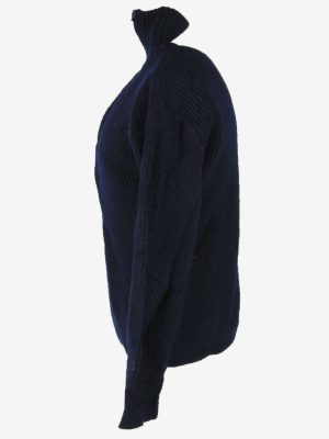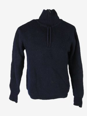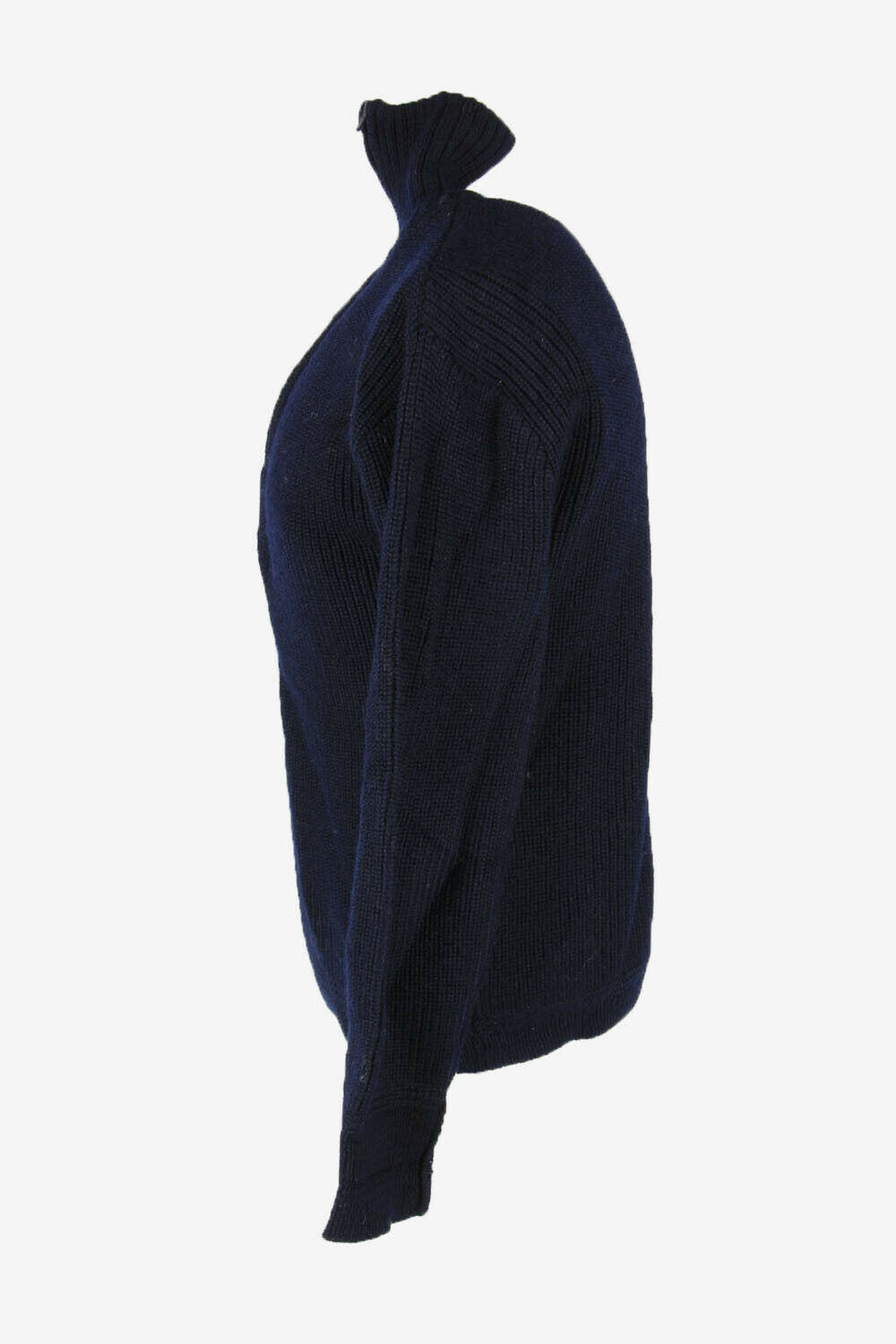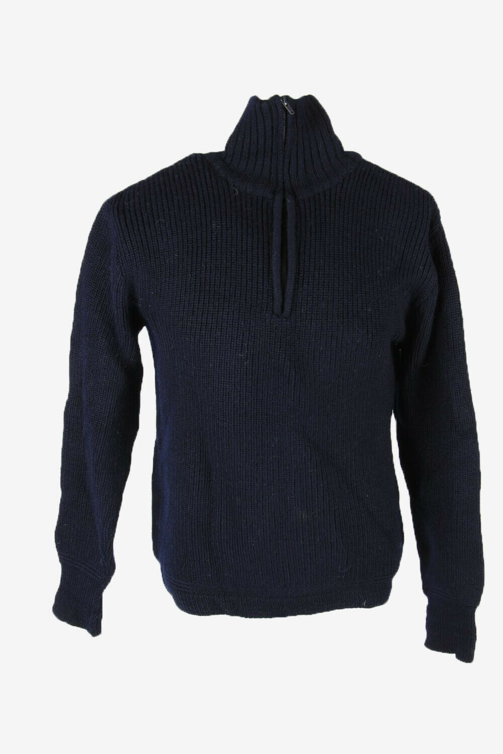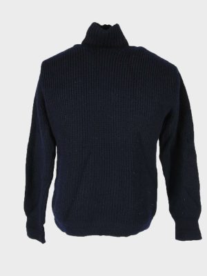 Vintage Knitted Wool Jumper Turtle Zip Neck 90s Navy M