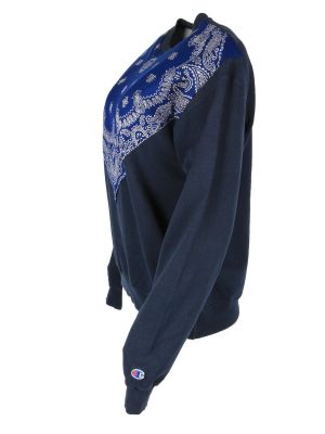 Champion Remake Sweatshirt Top Vintage Crew Neck Patchwork 90s Navy M-SW3150