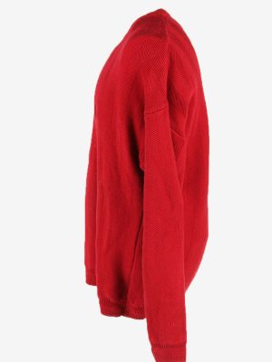 Champs Cable Knit Jumper Vintage Crew Neck Pullover 90s Red Size XL