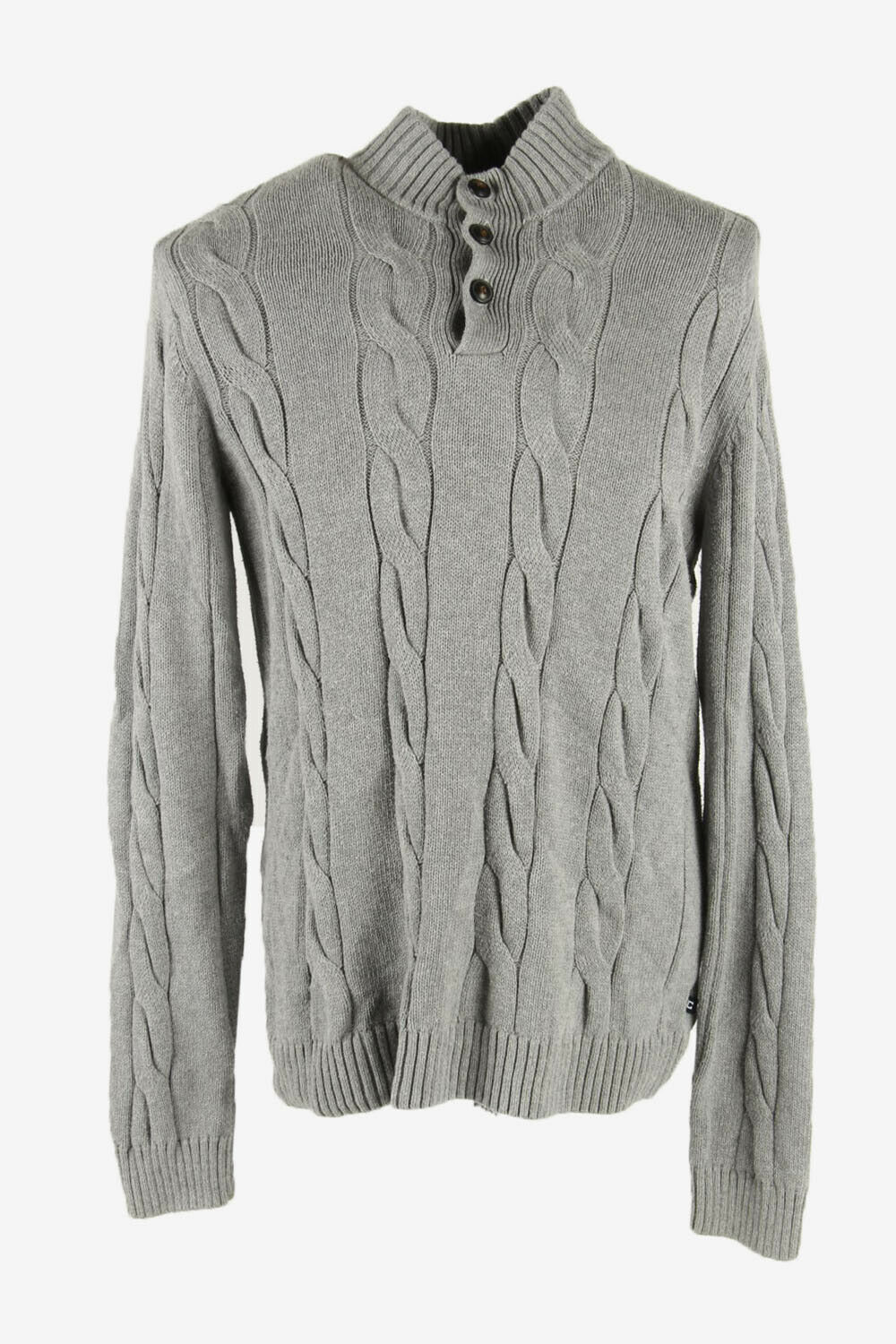 Champs Jumper Vintage Collared Pullover Retro Winter 90s Grey Size L