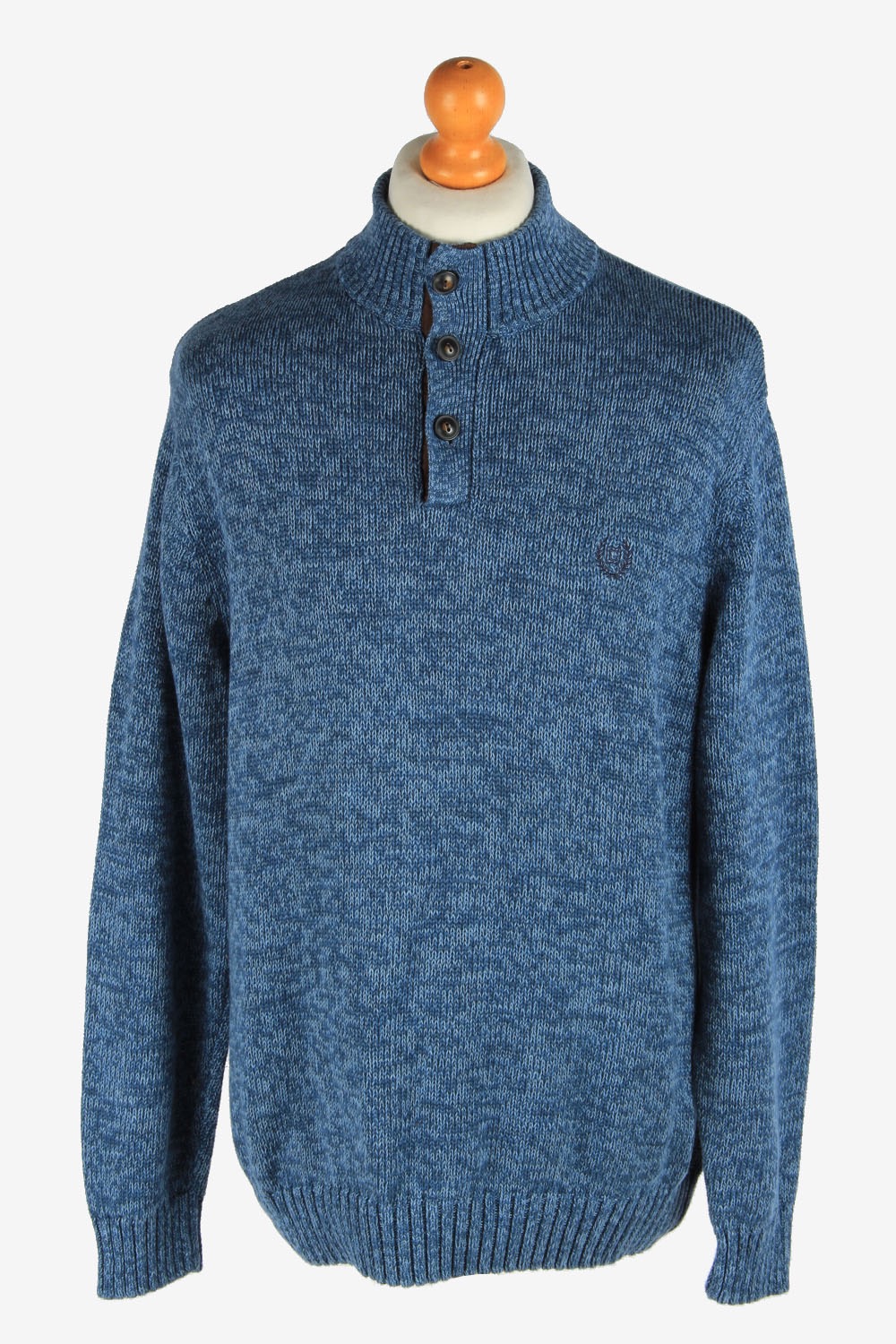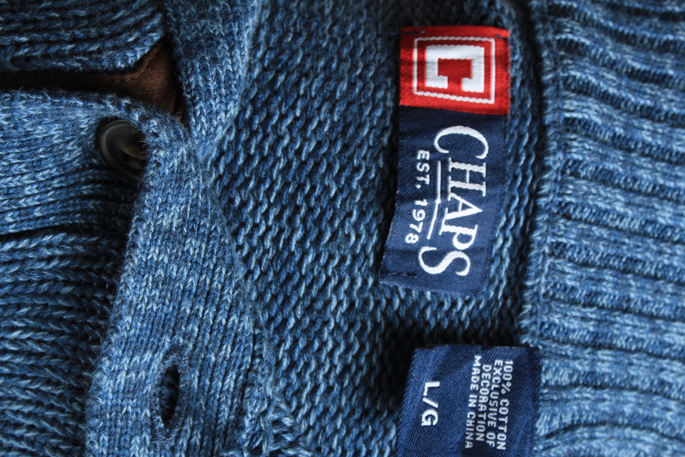 100 % Genuine Chaps Button Neck Jumper Pullover Elbow Patch Vintage