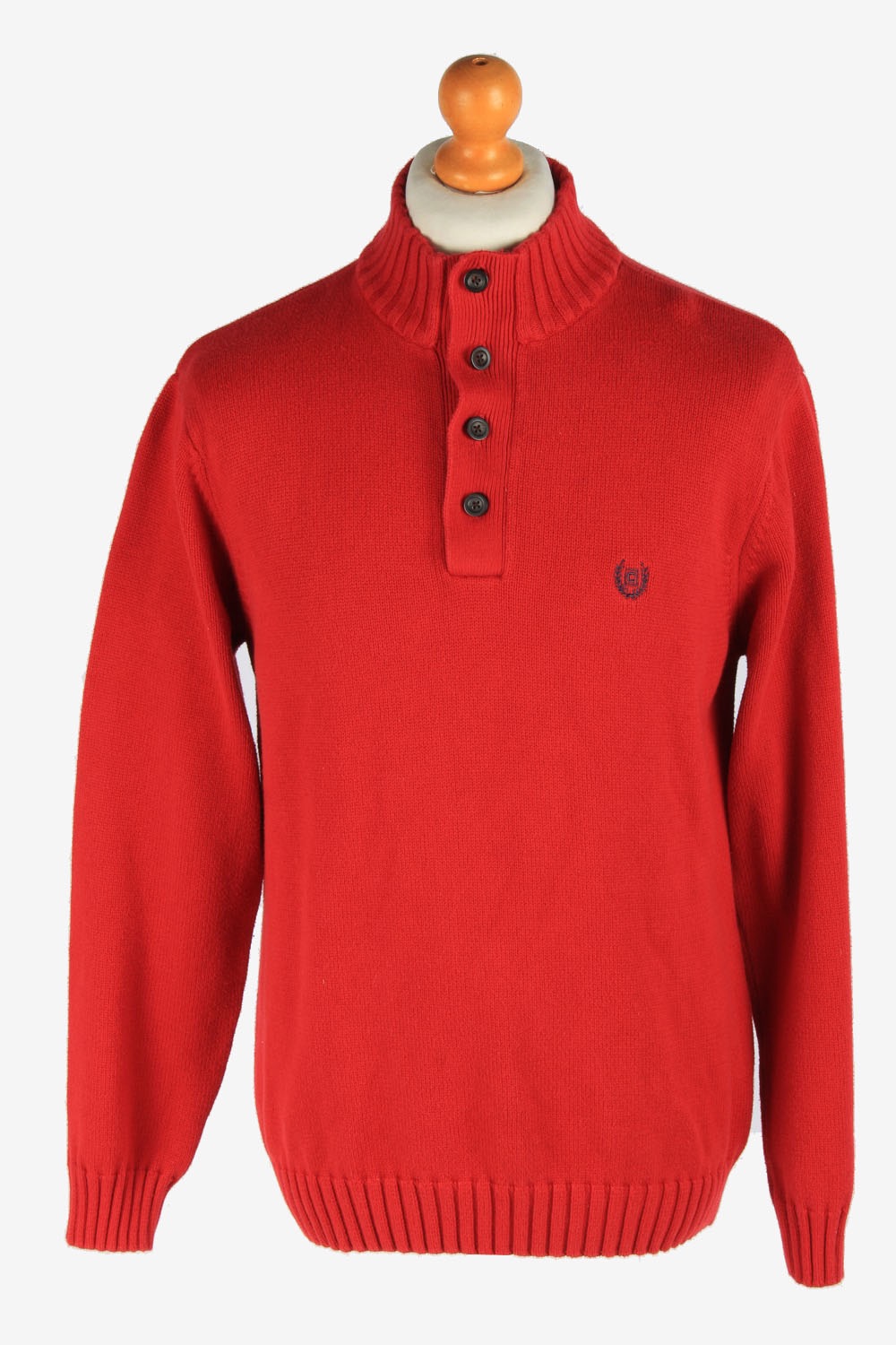 Chaps Button Neck Jumper Pullover Red M