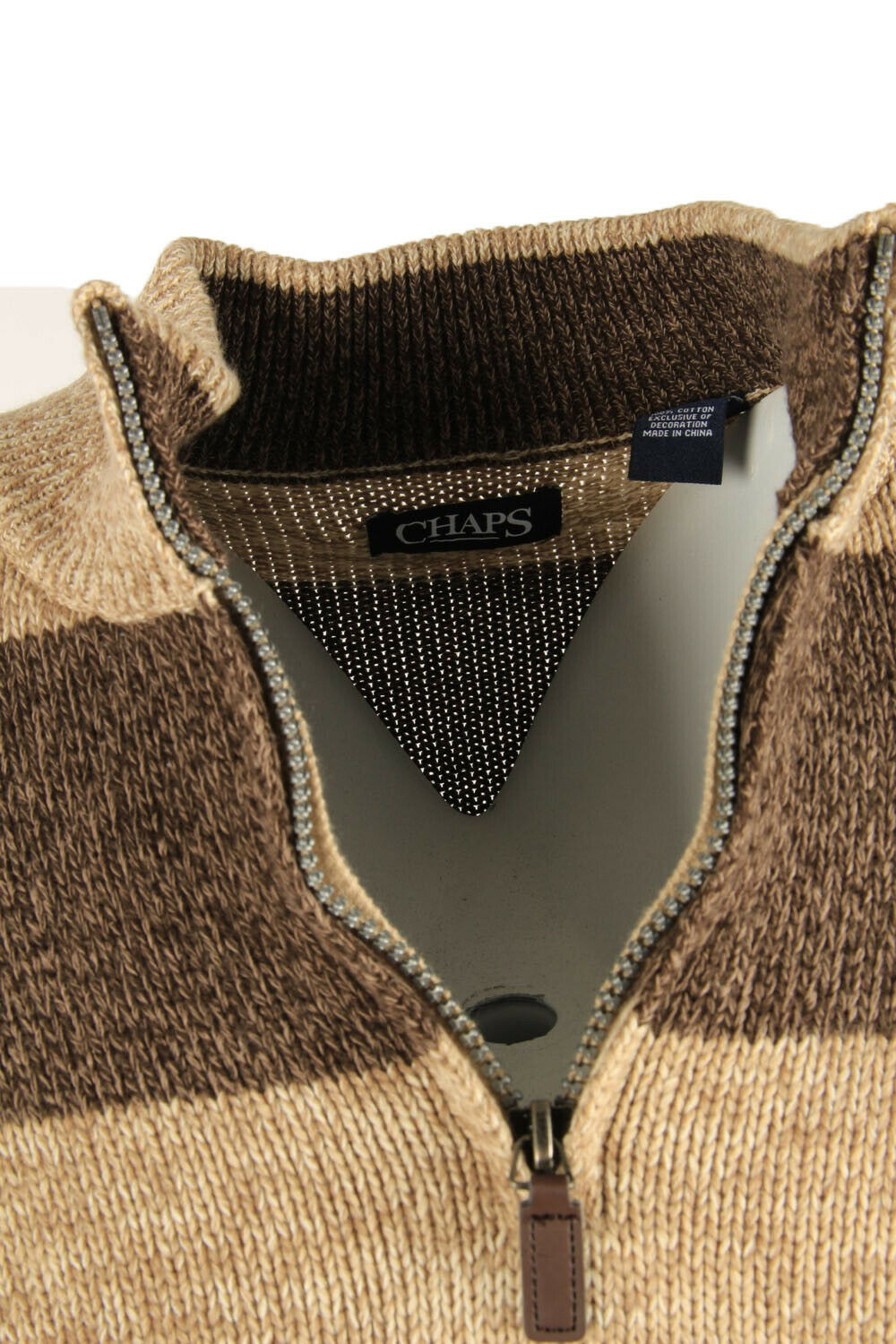 Chaps Plain Vintage Jumper High Neck Sweater Beige Size L