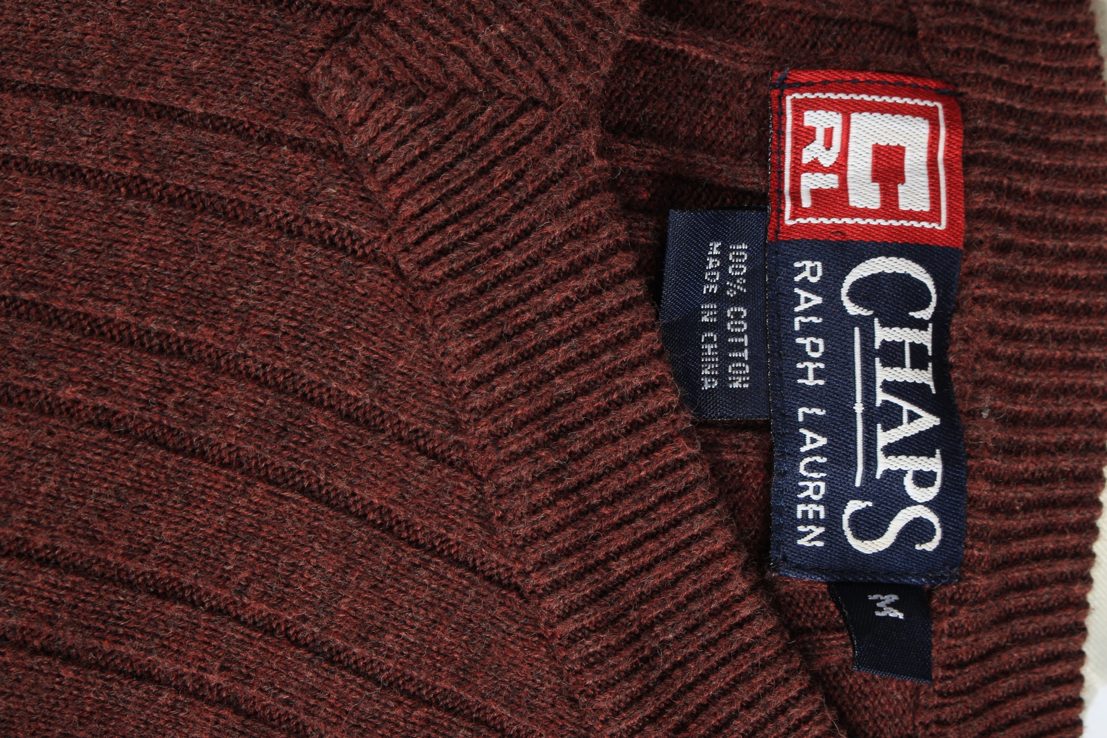 • Chaps V Neck Jumper Pullover Vintage Size M Maroon -IL2497-161400