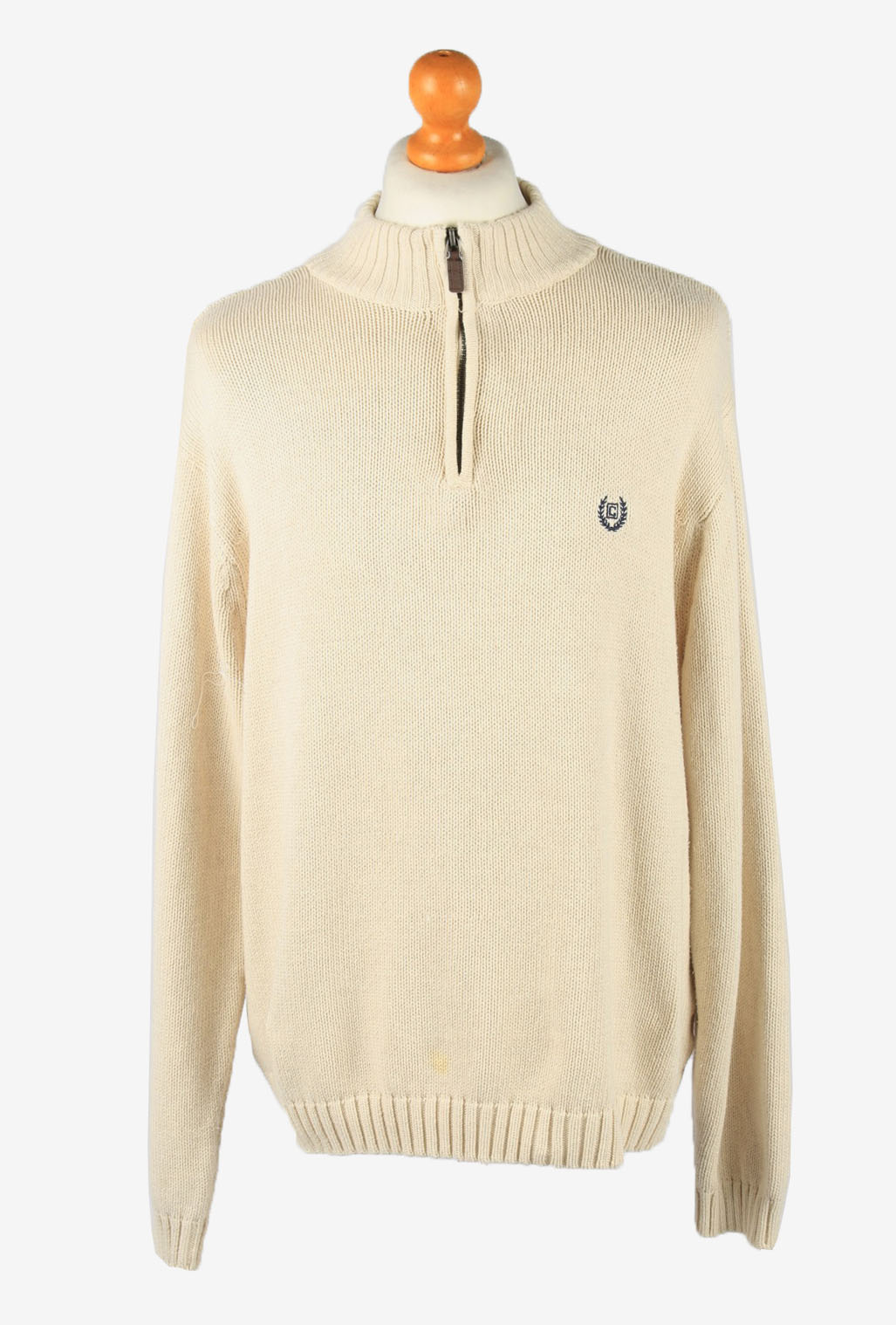 Chaps Zip Neck Jumper Pullover 90s Mens Beige XXL