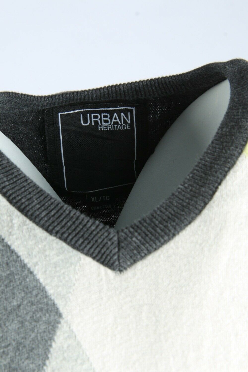 Vintage Urban Heritage Diamond V Neck Jumper Golf 90s Grey M