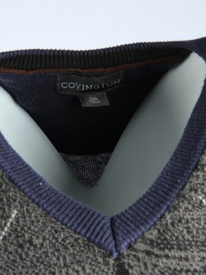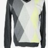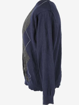 Vintage Diamond V Neck Jumper Golf 90s Casual Navy L