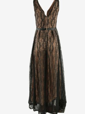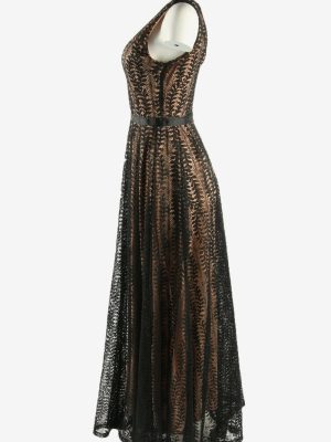 Embroidered Maxi Dress Vintage V Neck Wedding Luxury 90s Black Size M