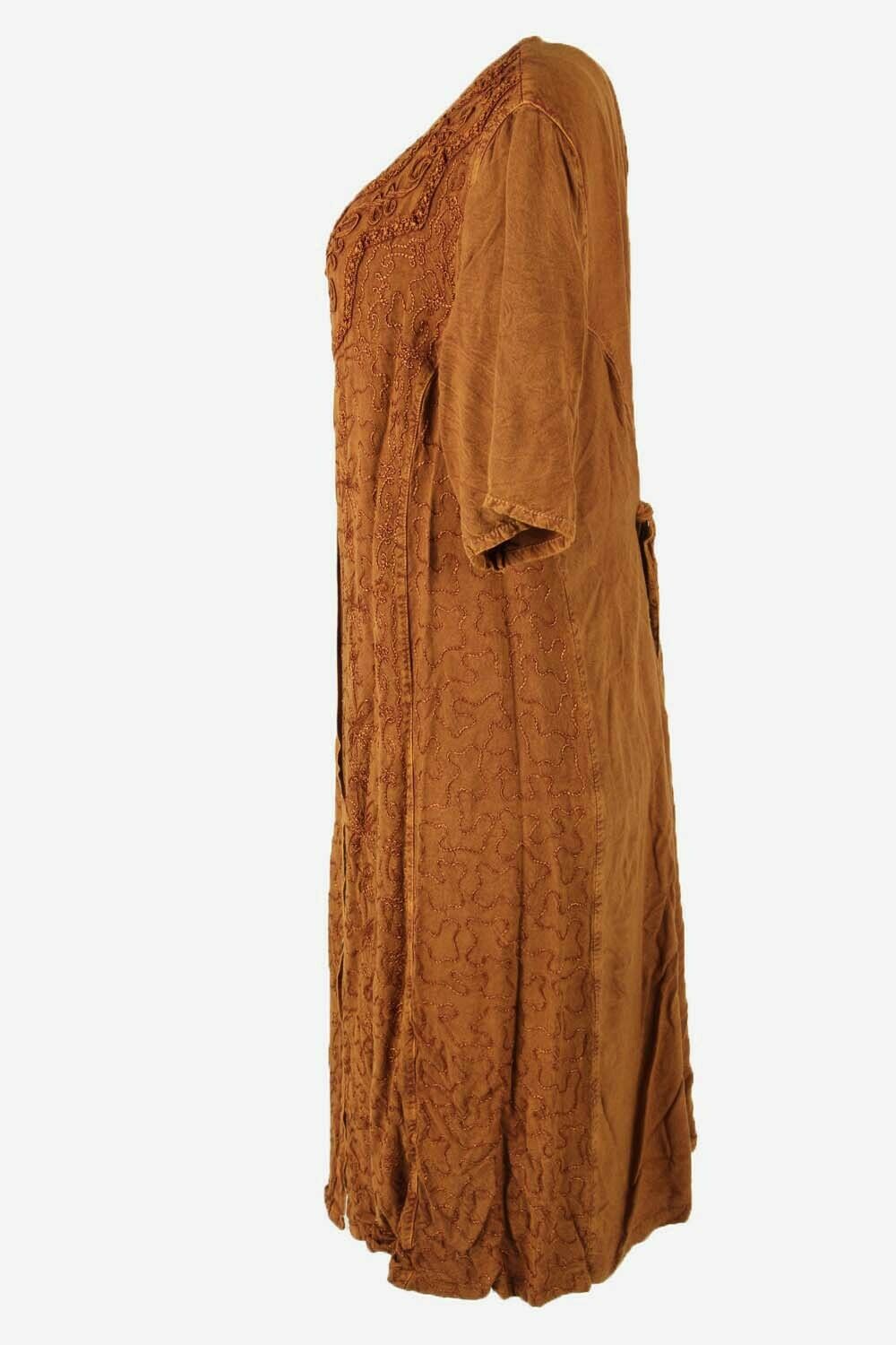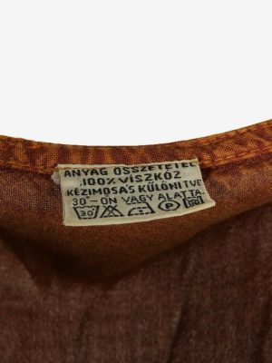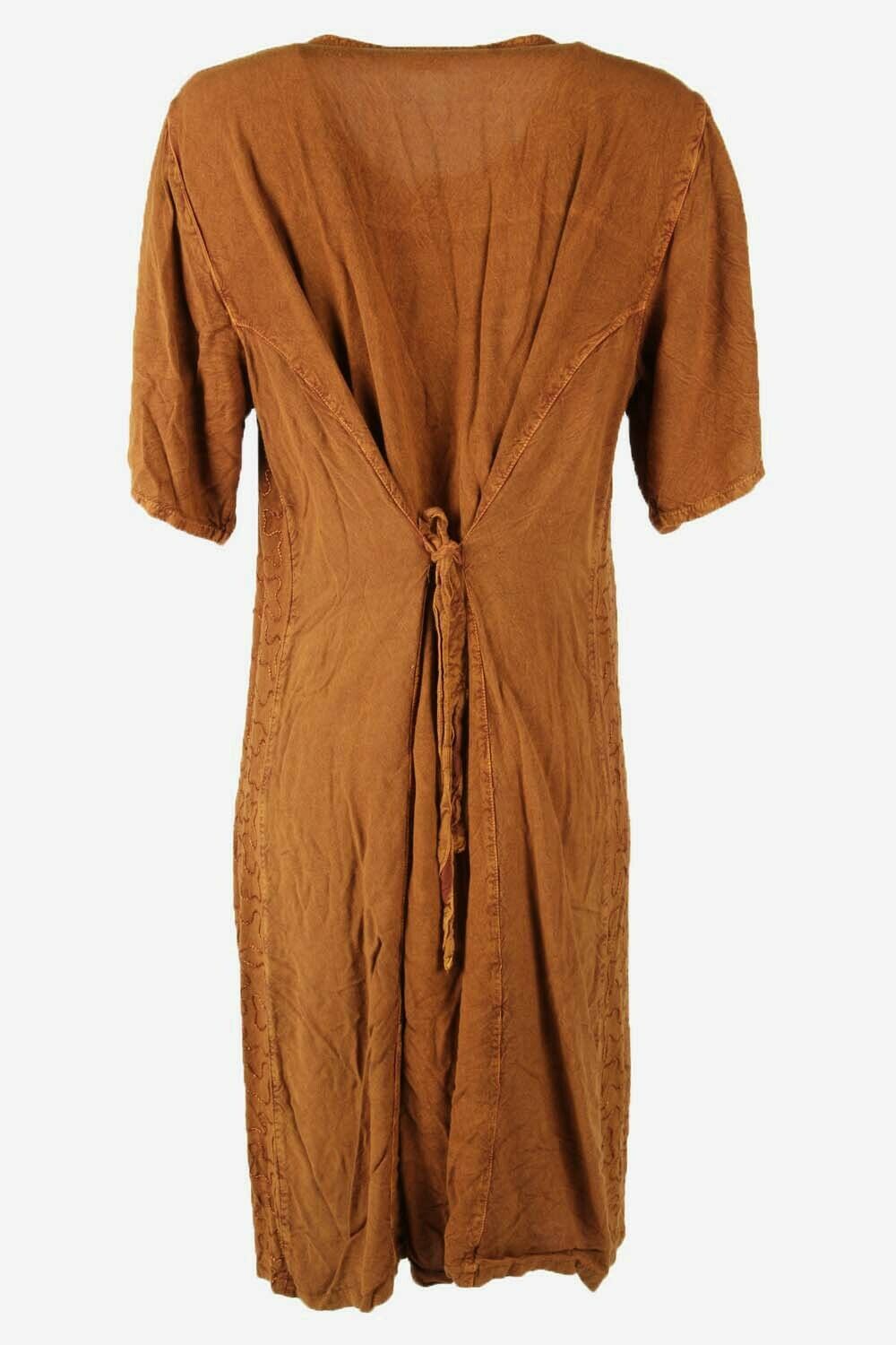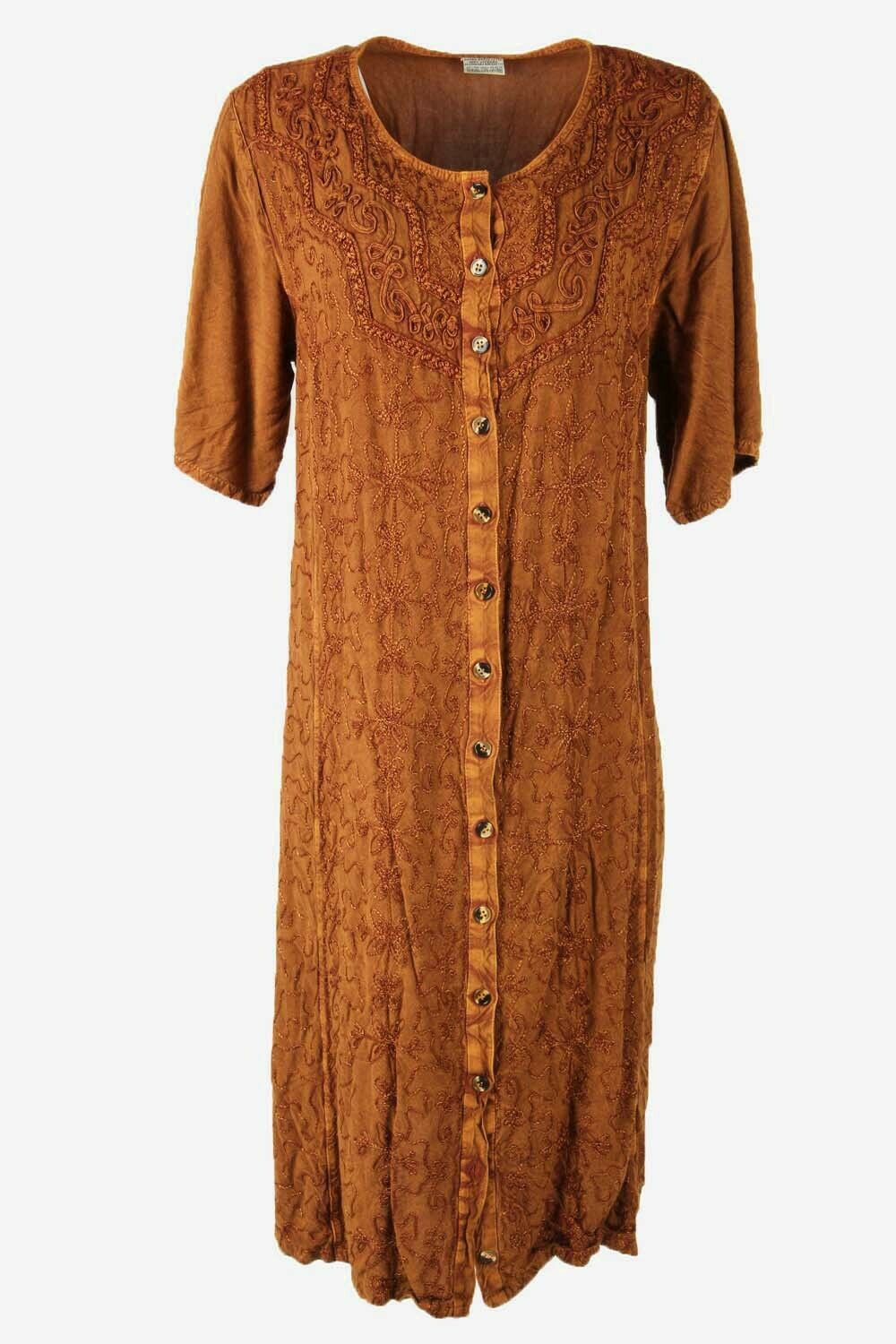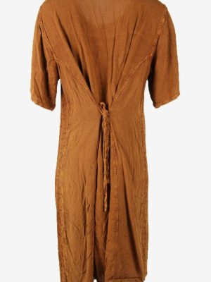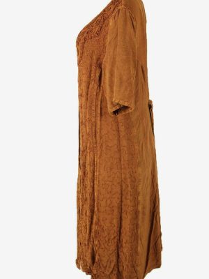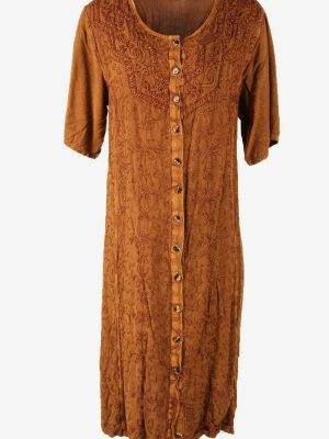 Embroidered Midi Dress Vintage Crew Neck Retro 90s Brown Size UK 12/14
