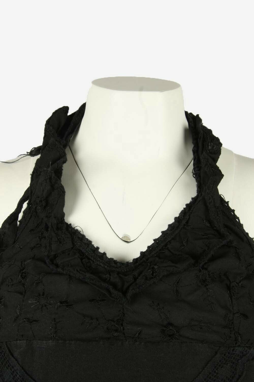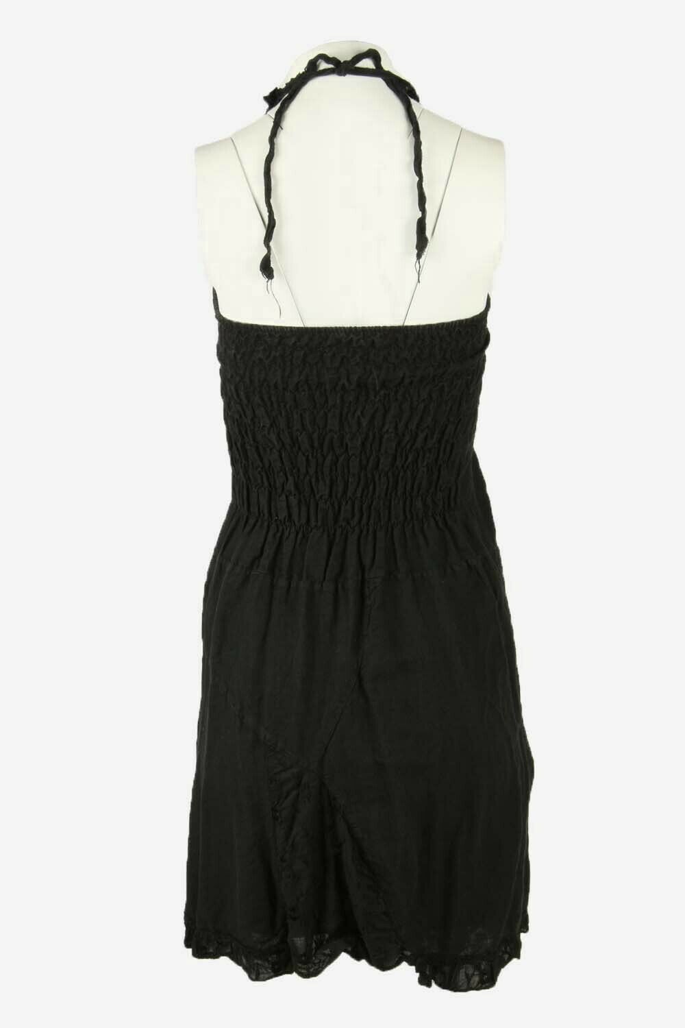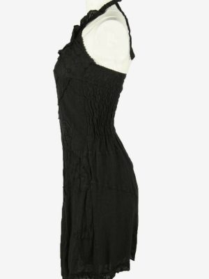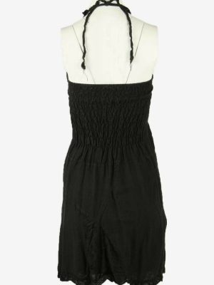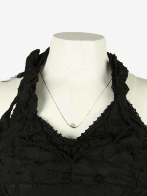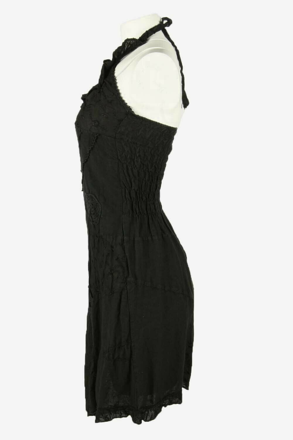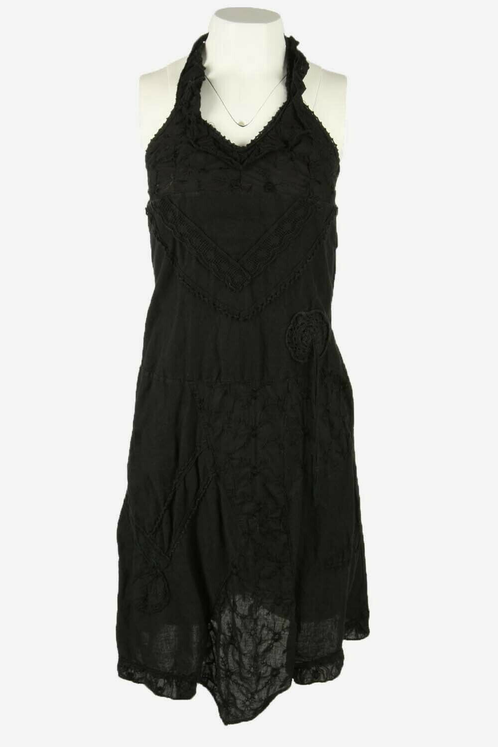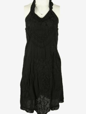 Floral Midi Dress Vintage Halter Neck Embroidered Retro 90s Black Size S
