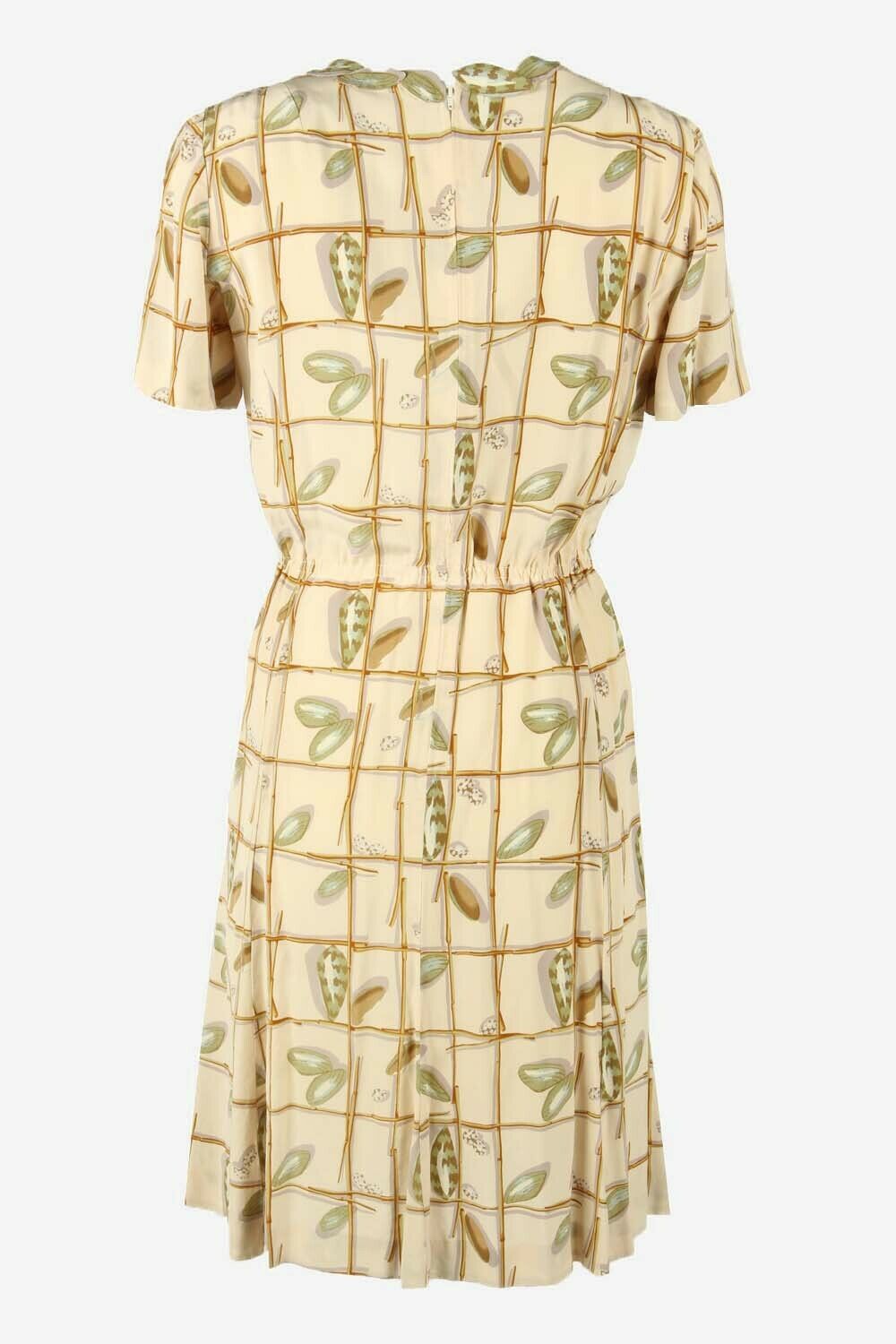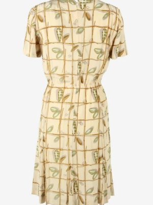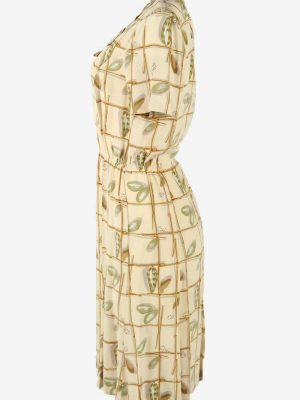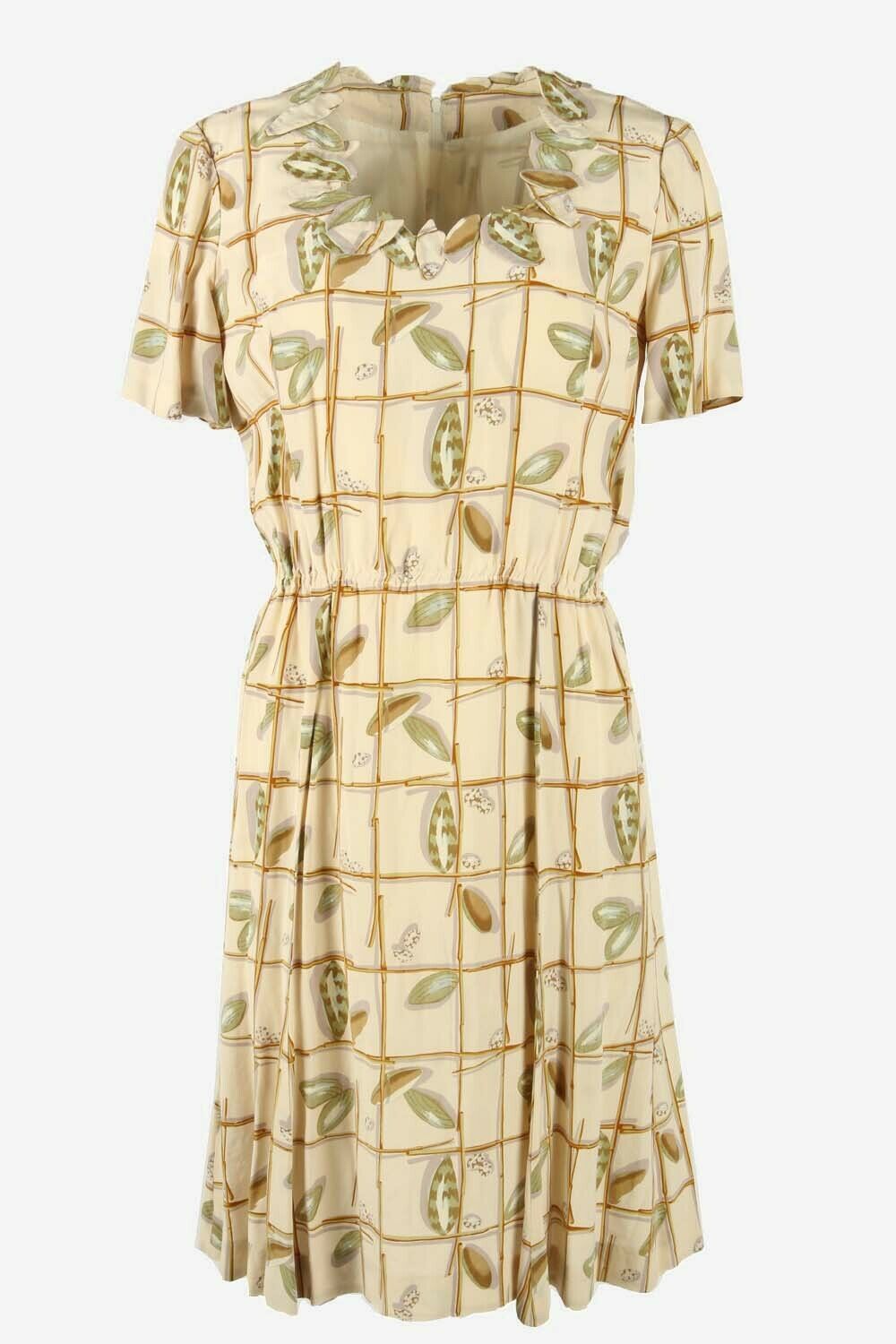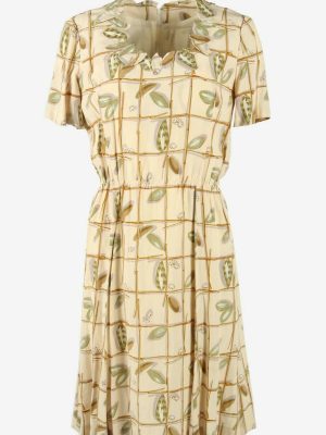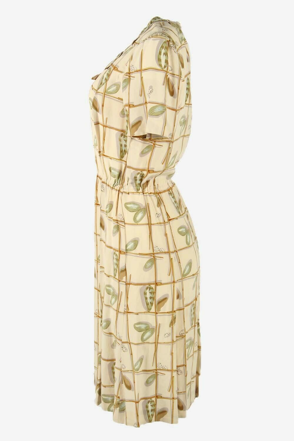 Floral Midi Dress Vintage Scoop Neck Lined Retro 80s Beige Size UK 10