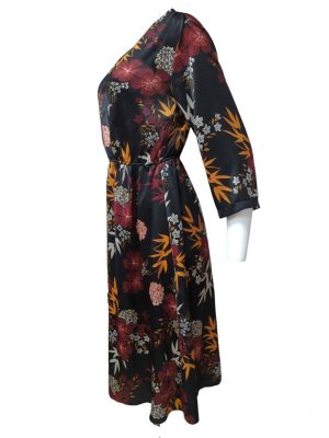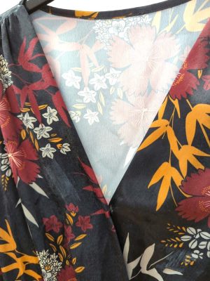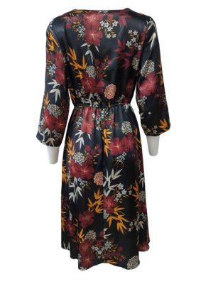 Floral Print Dress Wrap Front Detailed V Neck Japanese Style Midi Size M