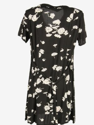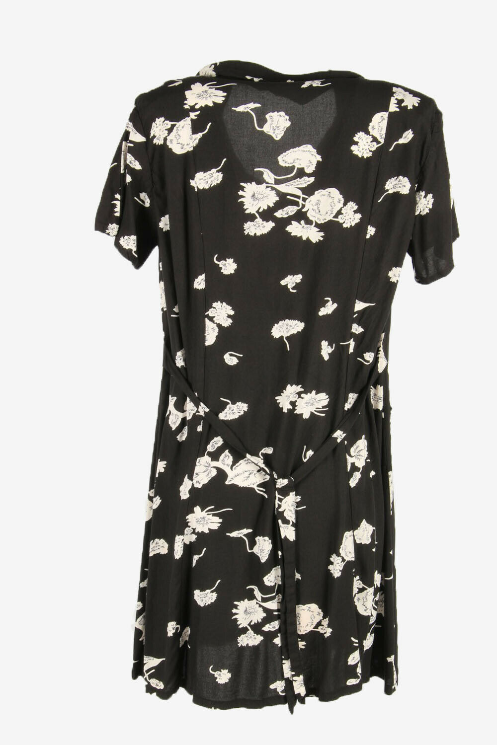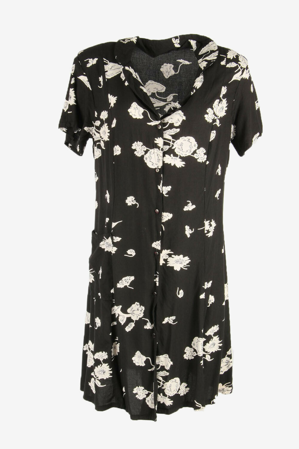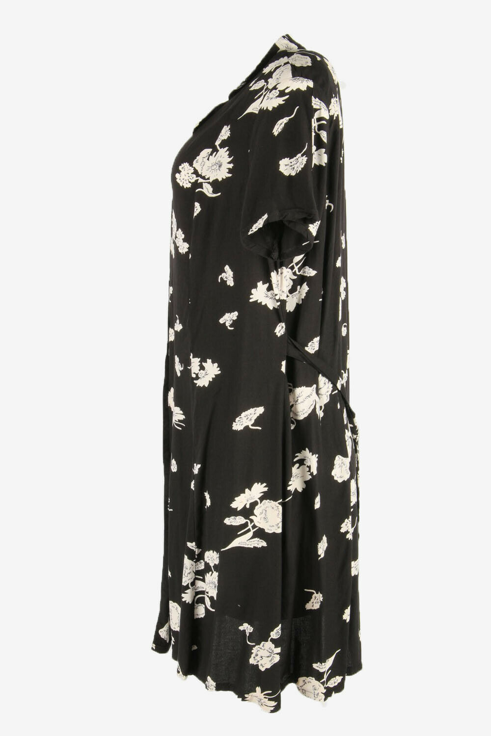 Flowers Print Dress Midi Dress Short Sleeve Collared Black Size XL