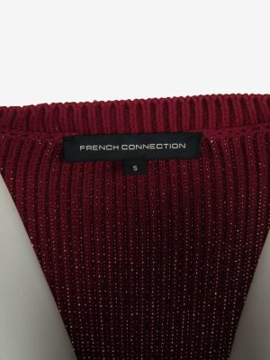 French Connection Jumper V Neck Vintage Long Sleeve Retro Purple Size S