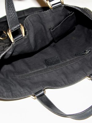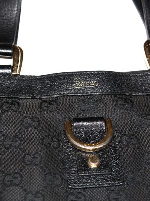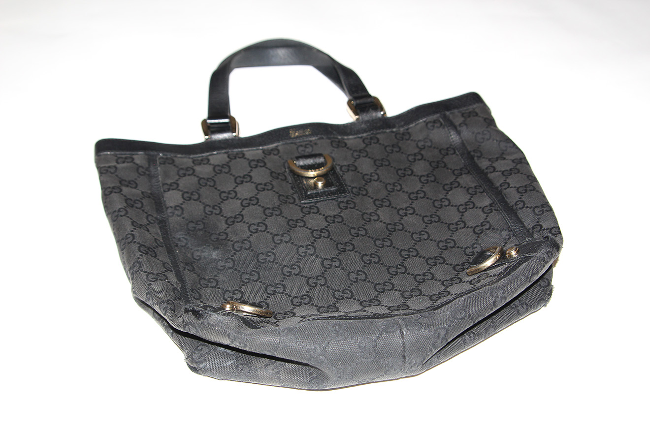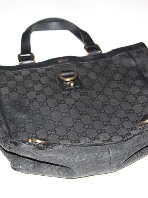 Gucci Abbey Cloth Bag Black GG Canvas and Leather Woman Vintage