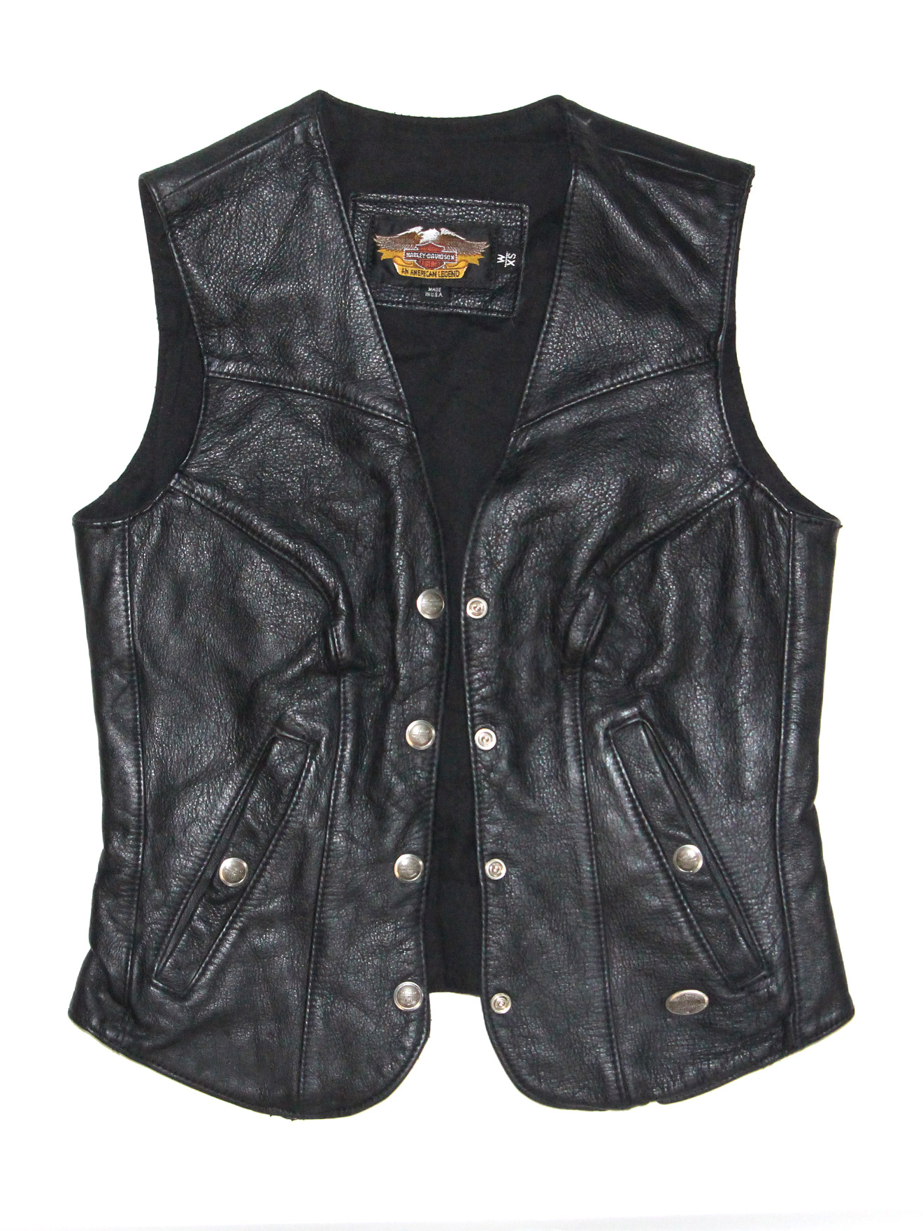 Harley Davidson Vintage Waistcoat Leather Black Men Made in USA Size XS