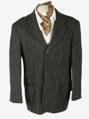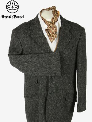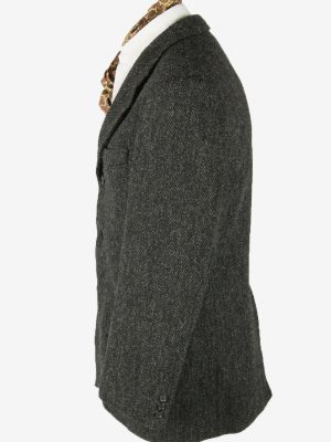 Harris Tweed Vintage Blazer Jacket Herringbone Weave 80s Grey Size L