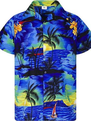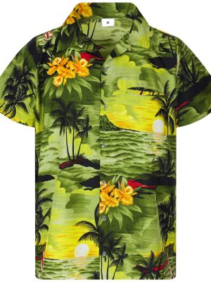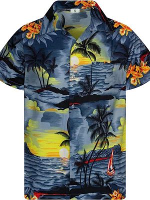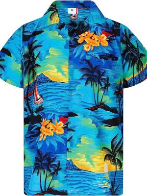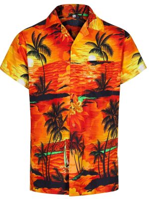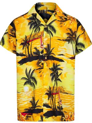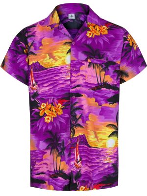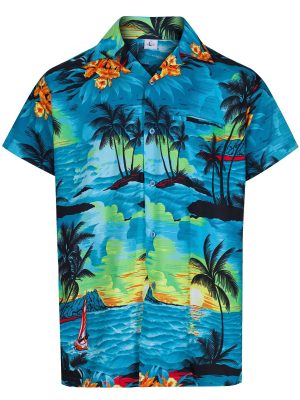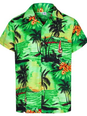 - Floral printed men’s contemporary Hawaiian shirt for summer and holiday beach wear.