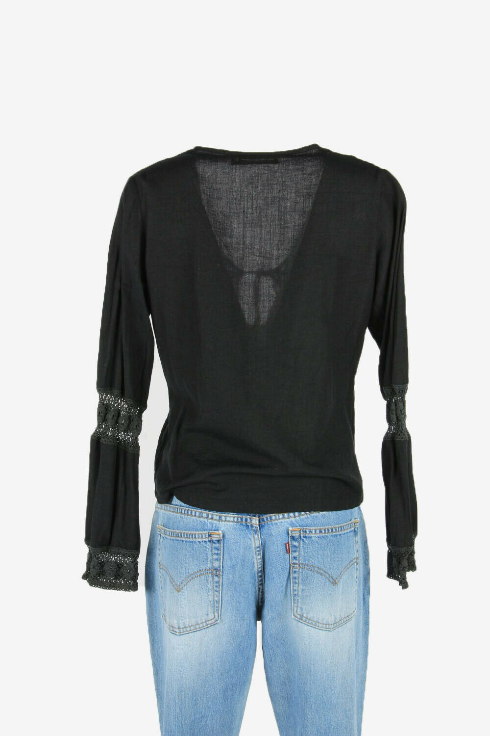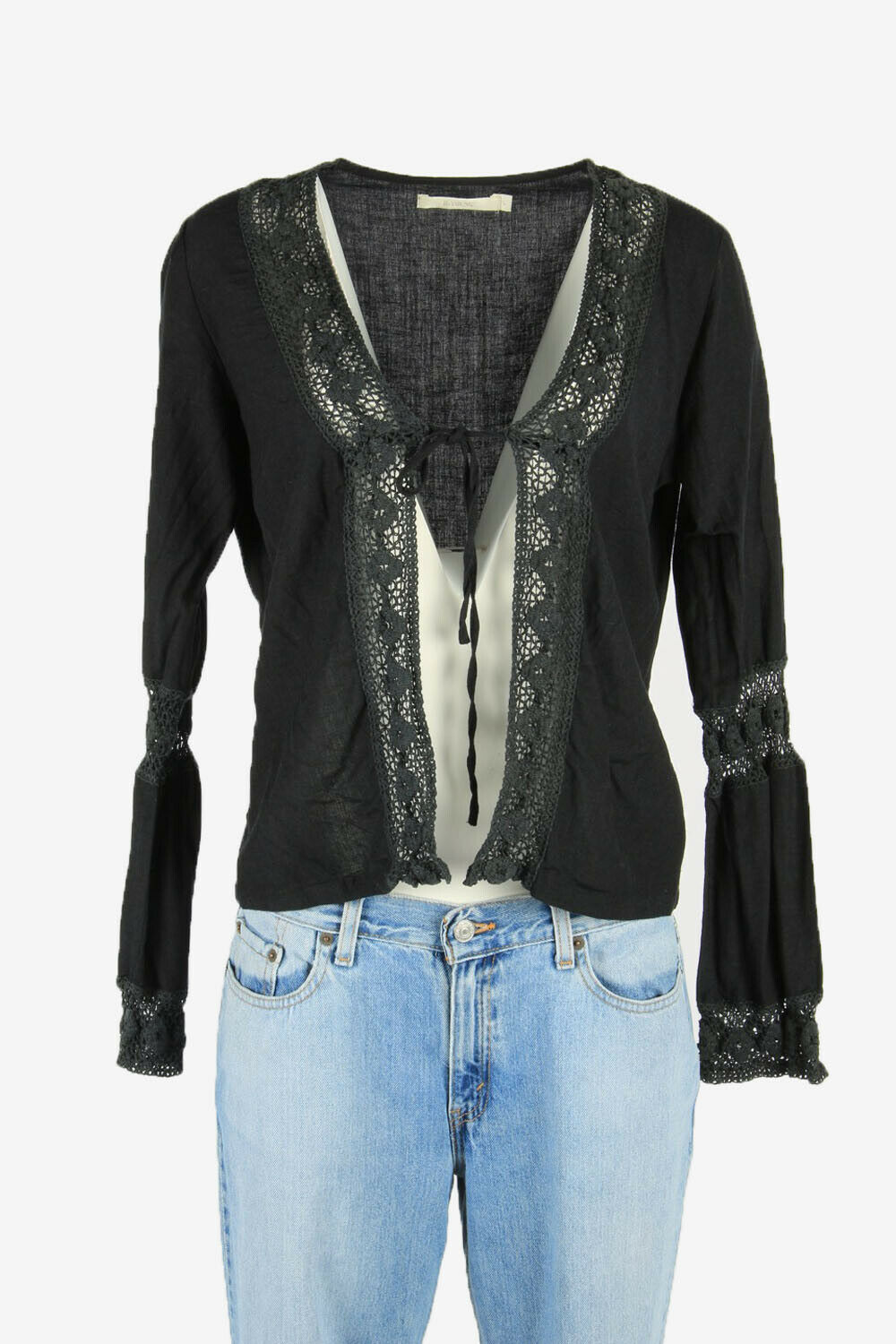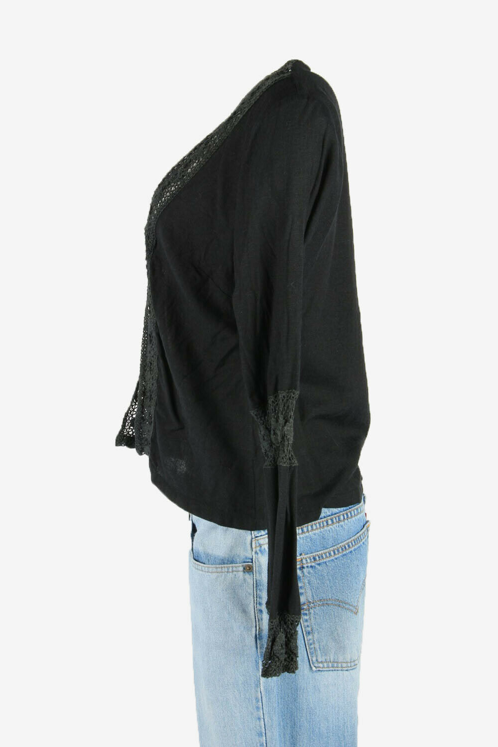 Hippie Gypsy Embroidered Blouse Tunic Top Vintage Kaftan Black Size L