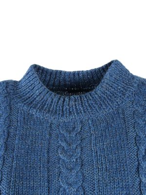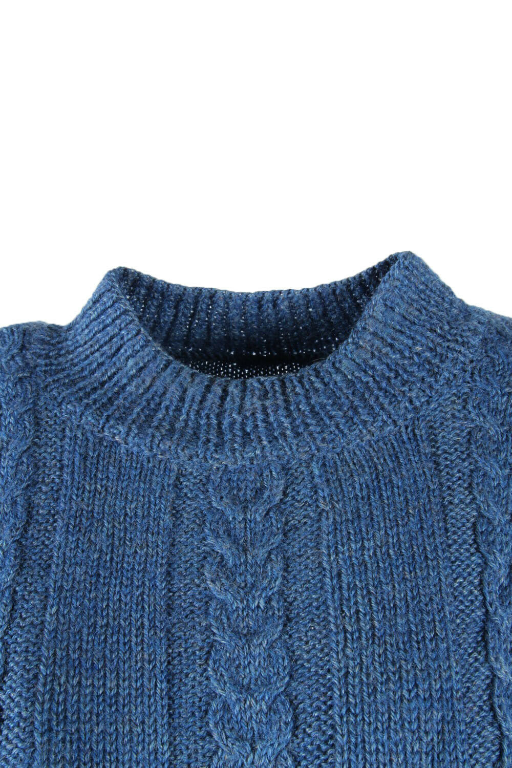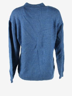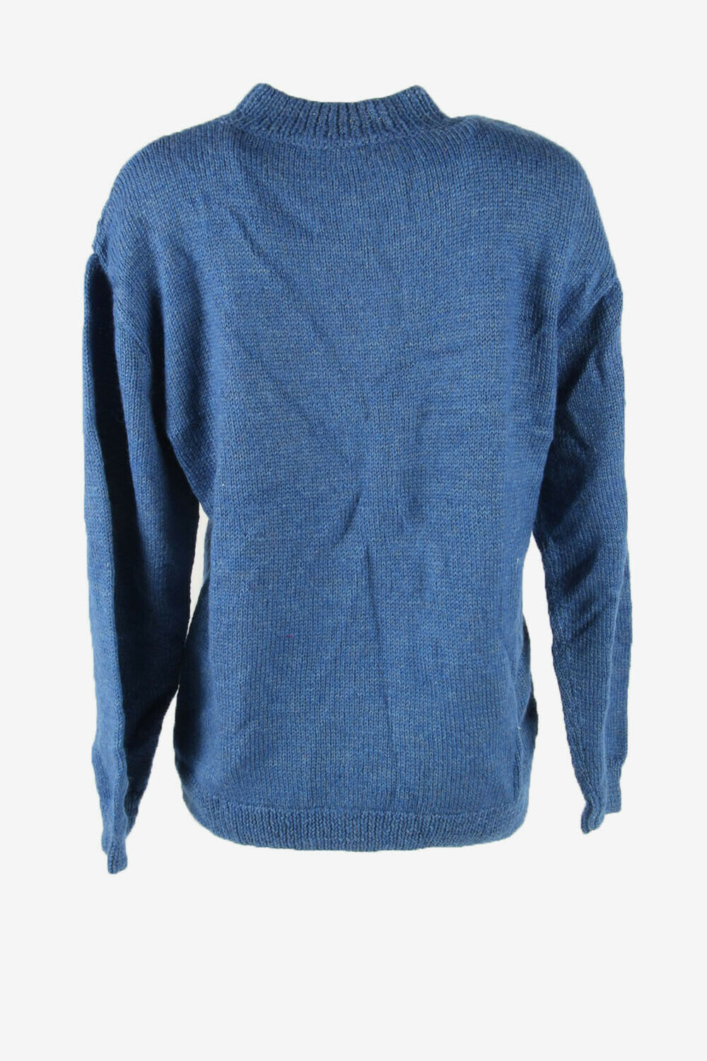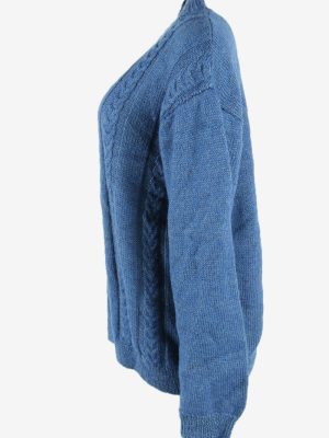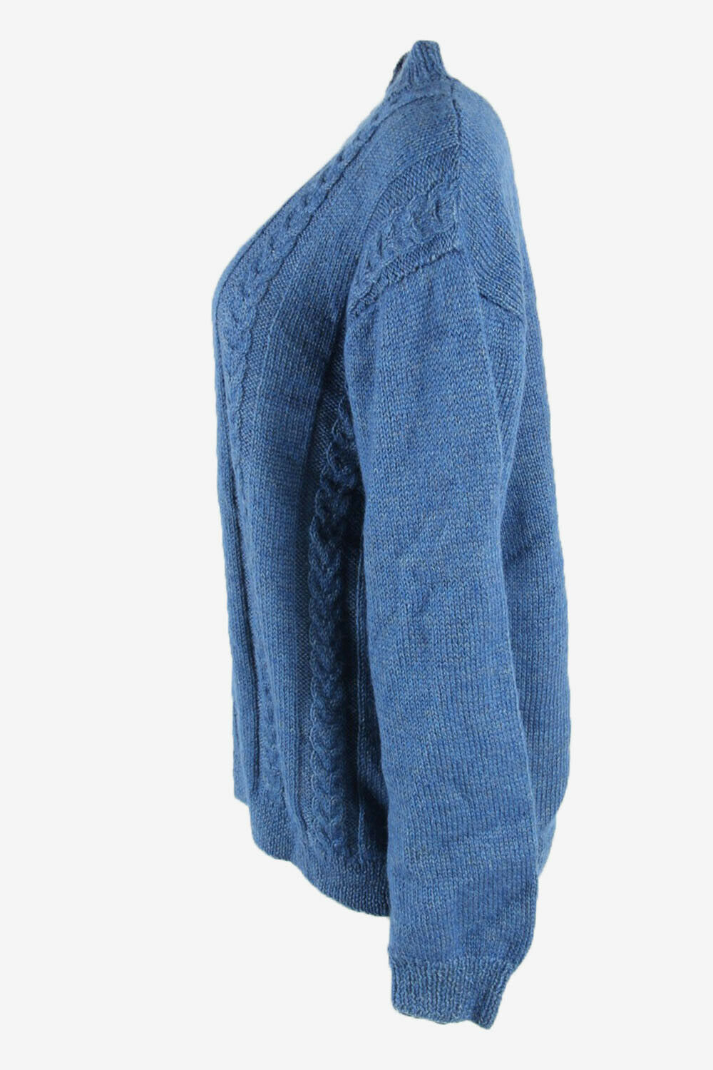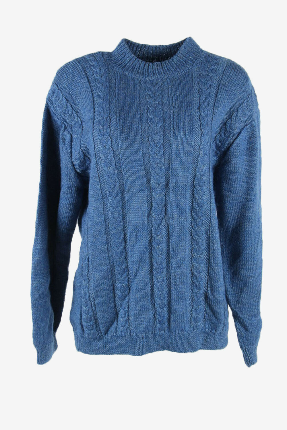 Jumper Vintage Cable Knit High Neck Winter Warm Retro 90s Blue Size L
