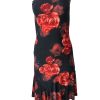Just For U One Shoulder Dress Evening Rose Print Abstract Hem Size L/XL