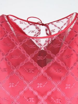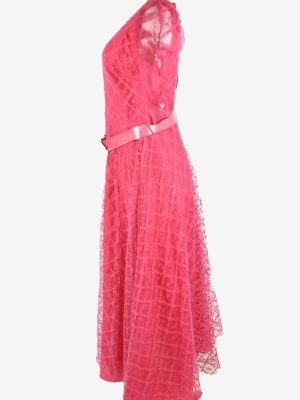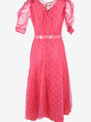 Lace Maxi Dress Vintage Crew Neck Fluffy Fancy Party Style Pink M