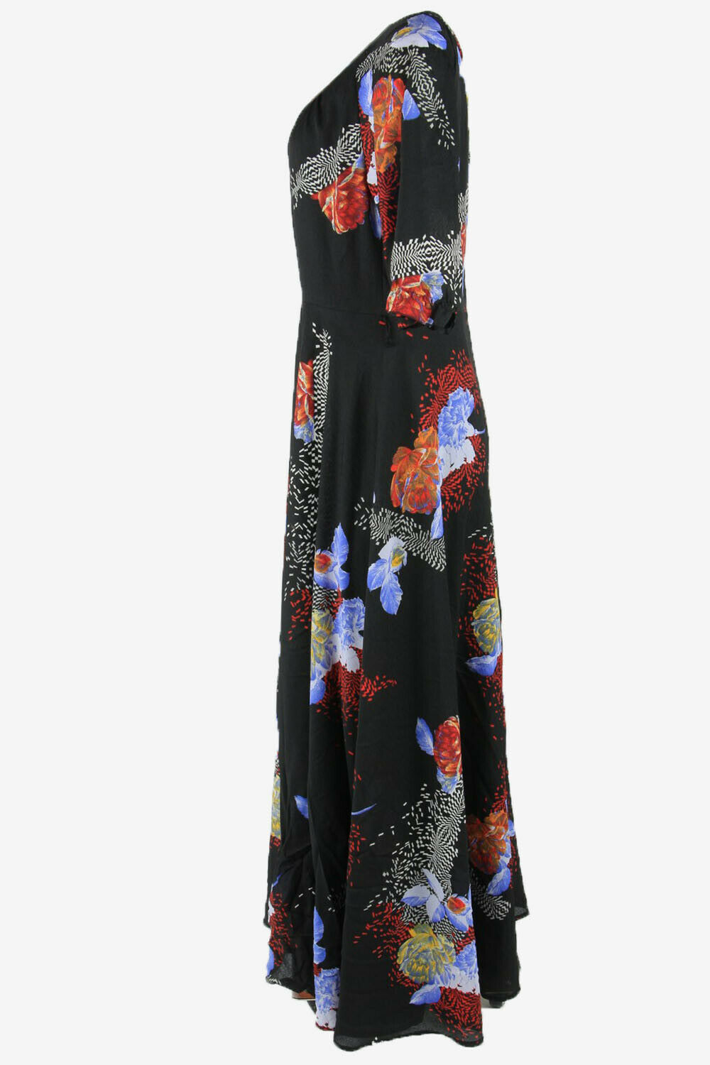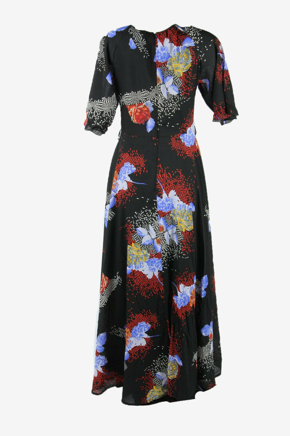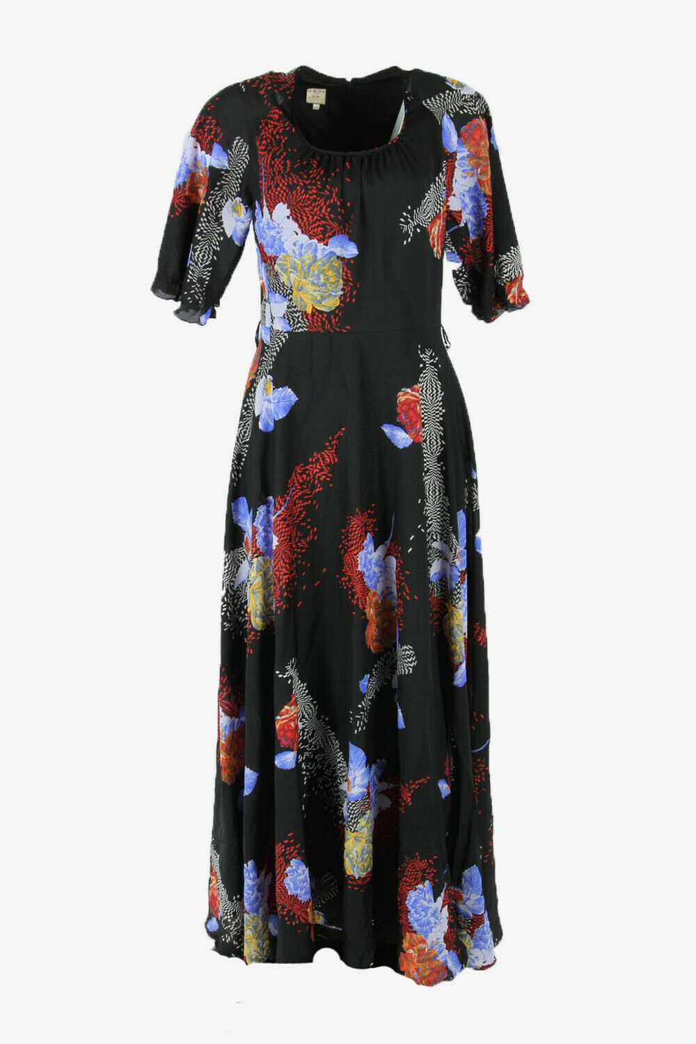 Lady Floral Maxi Dress Vintage Round Neck Wedding 80s Black Size M