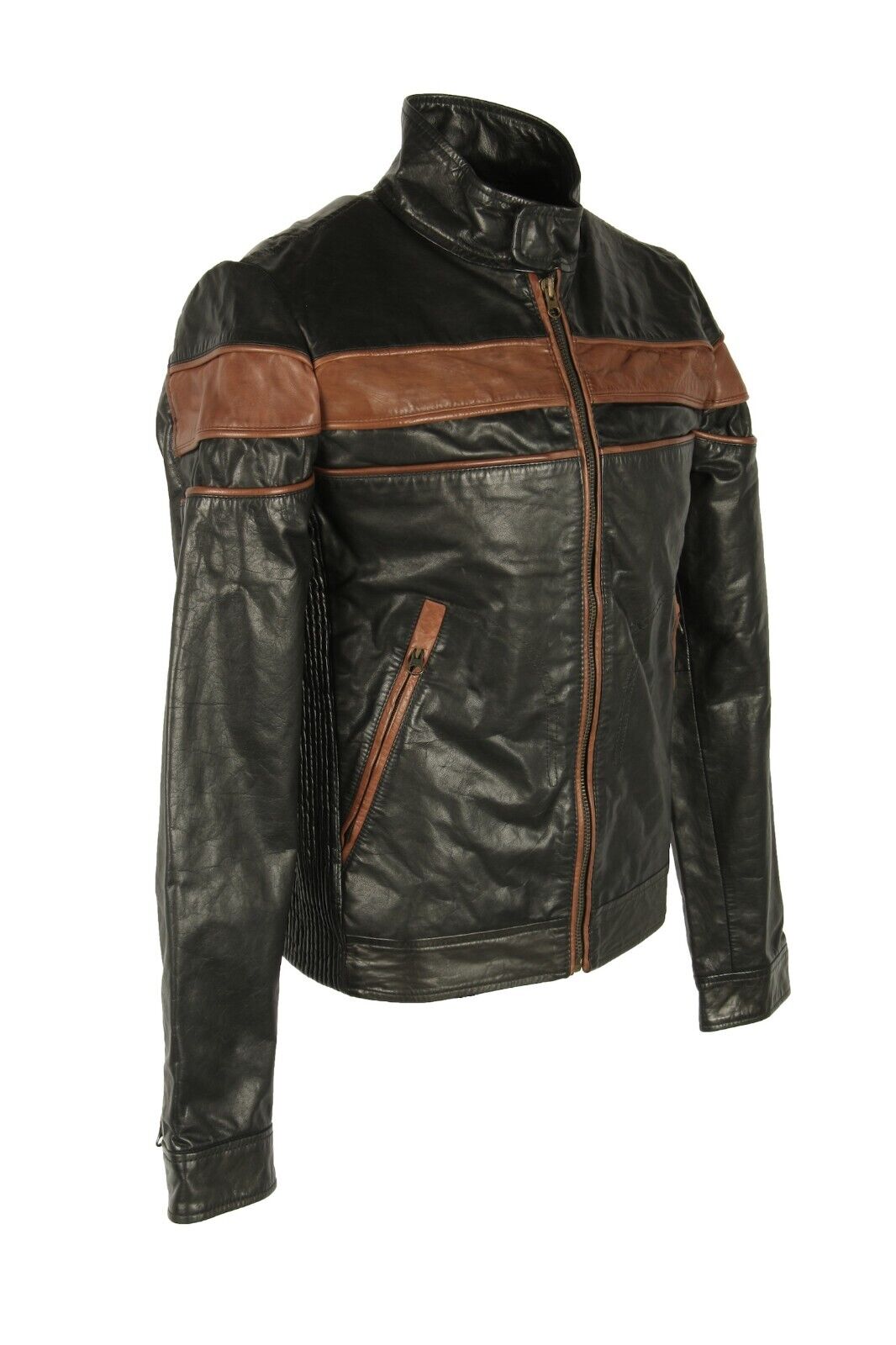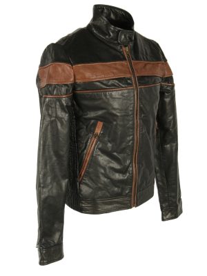 Brand New Trendy Mens Black Real Leather Bomber Biker Jacket. This jacket is made from Black Soft Sheep Leather