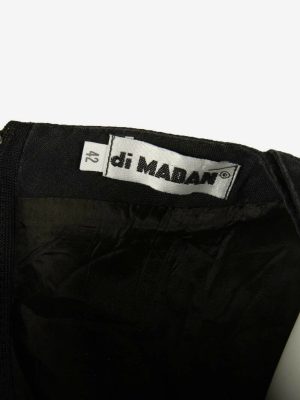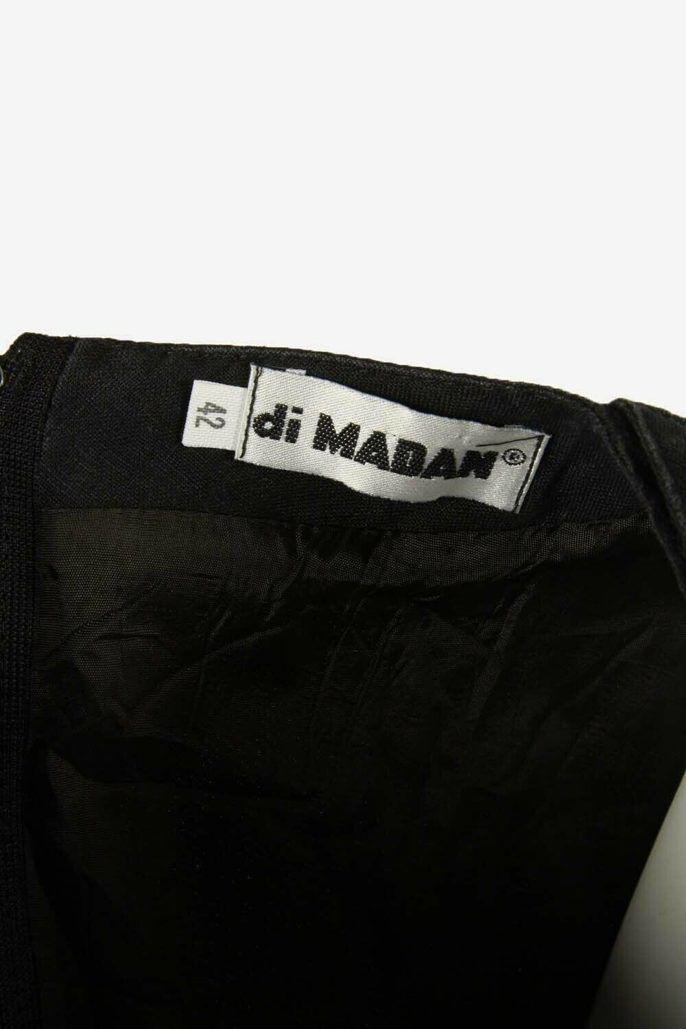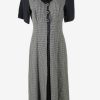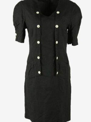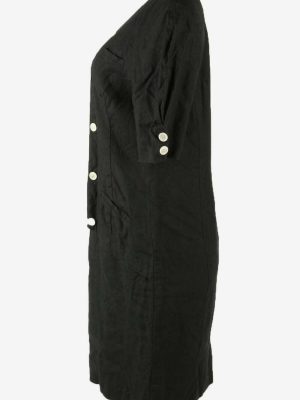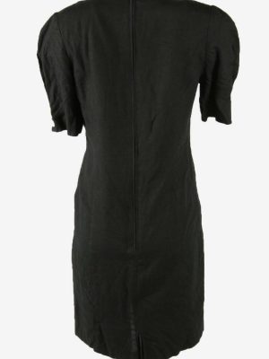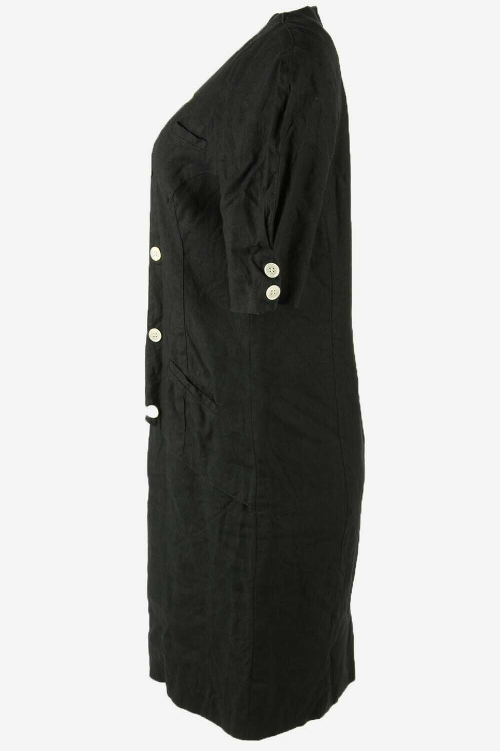 Linen Midi Dress Vintage V Neck Lined Pockets Retro 90s Black Size 42