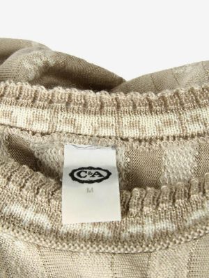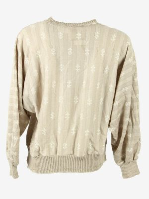 Long Sleeve Jumper Vintage Crew Neck Pullover Striped 90s Grey M