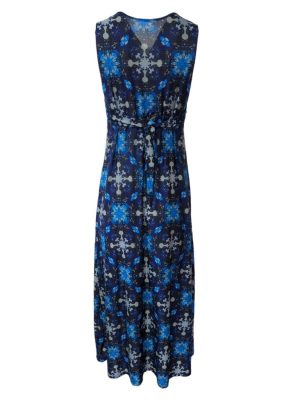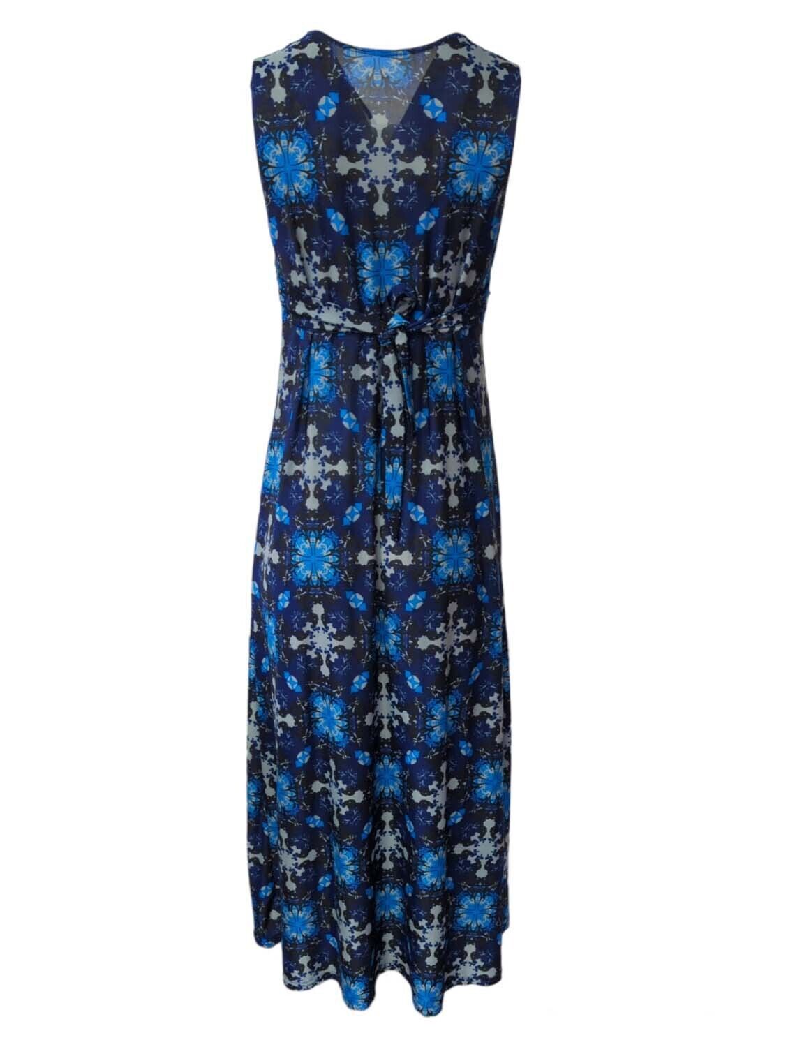 Maxi Dress Abstract Sleeveless Self-Tie Plunge-V Printed Maxi Size S/M