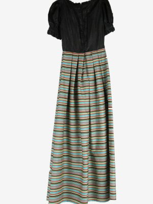 Vintage Maxi Dress Striped Crew Neck Short Sleeve Black XS