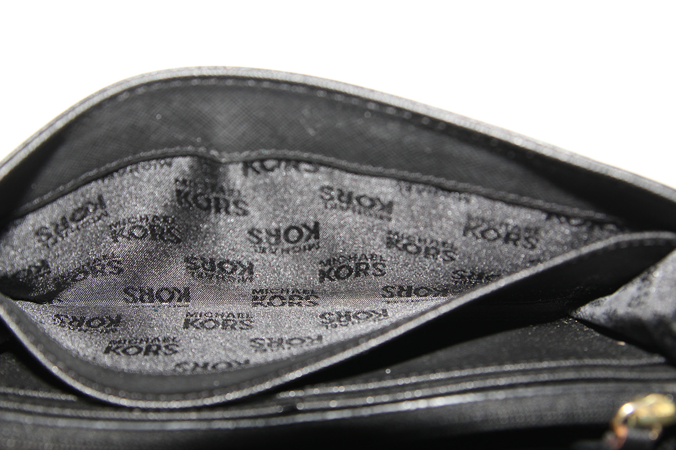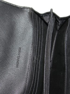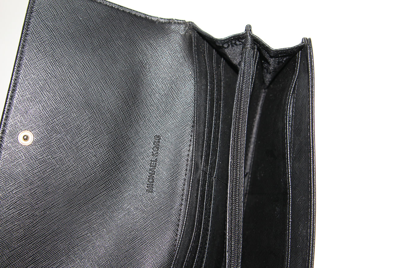 Michael Kors Woman Black Leather Flap Pebbled Retro Wallet Gold Tone MK