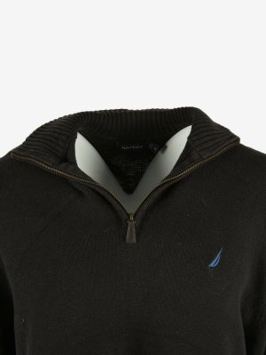 Nautica Jumper Vintage Collared Pullover Retro Winter 90s Black Size XL