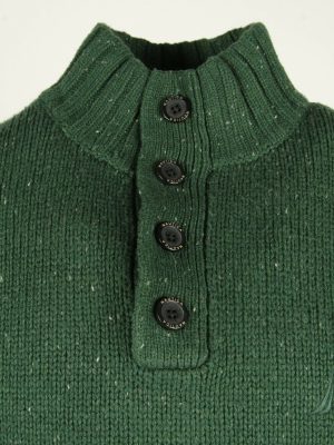 Nautica Jumper Vintage Pullover Collared Button Up 90s Green Size L