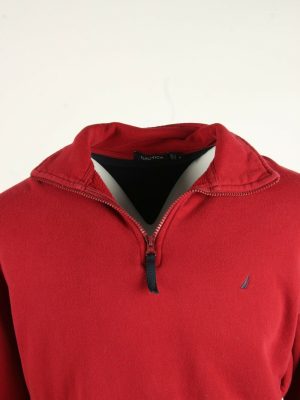 Nautica Vintage Sweatshirt Half Zip Collared Retro 90s Red Size M