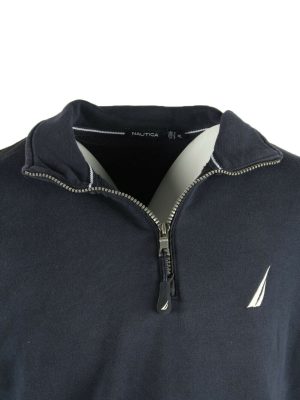 Nautica Vintage Sweatshirt Half Zip Shawl Neck Retro Navy Size XL