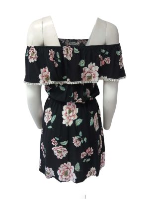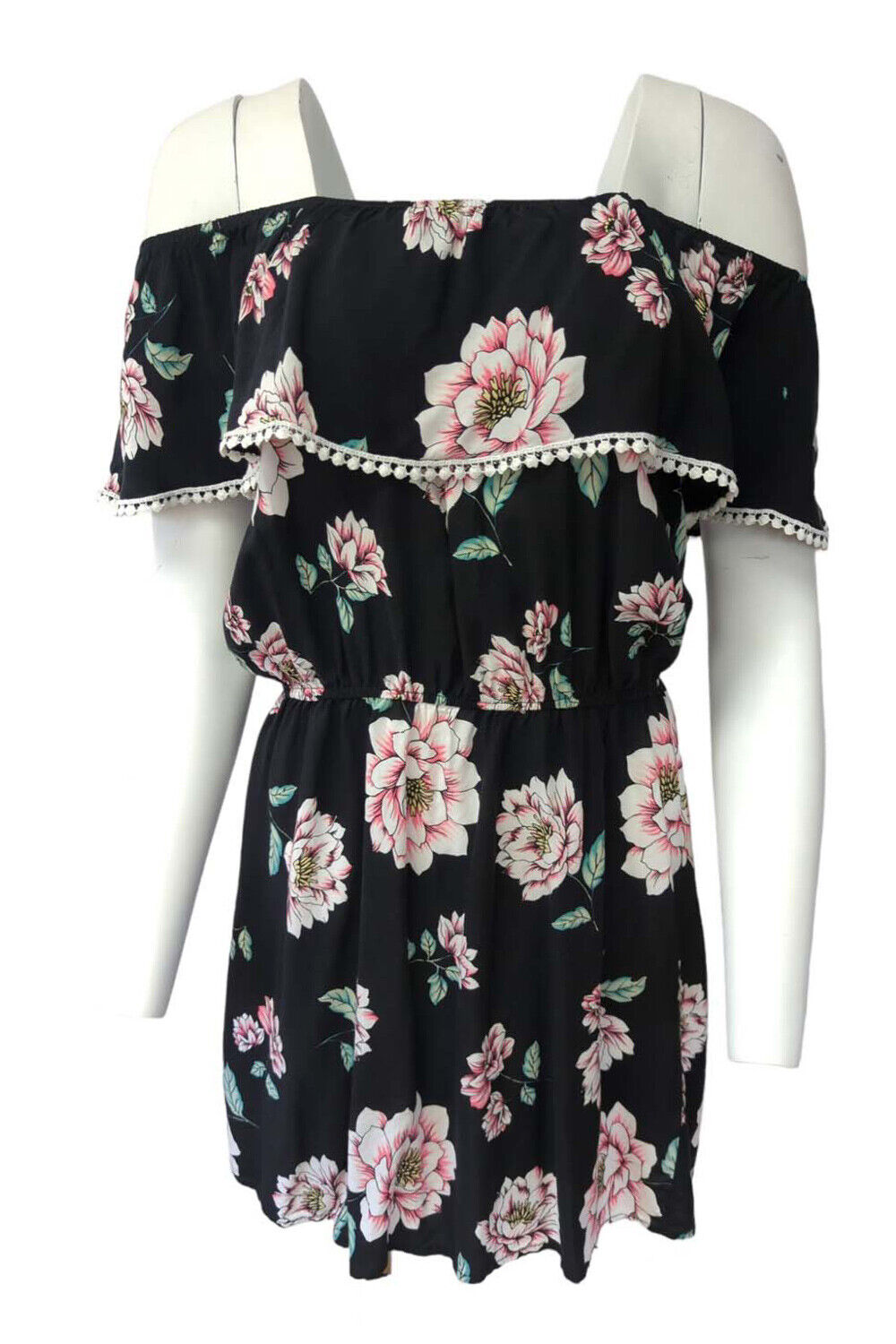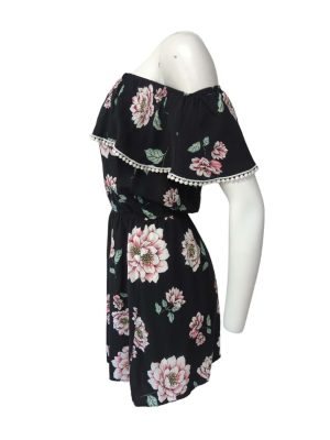 Off Shoulder Beach Mini Dress Elastic Waist Black Red Queen Size S/M