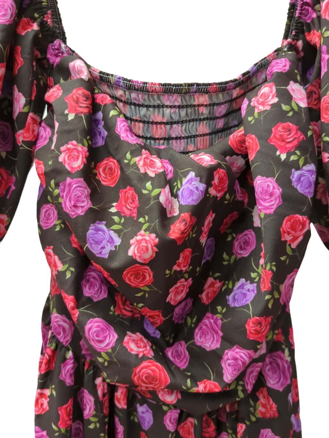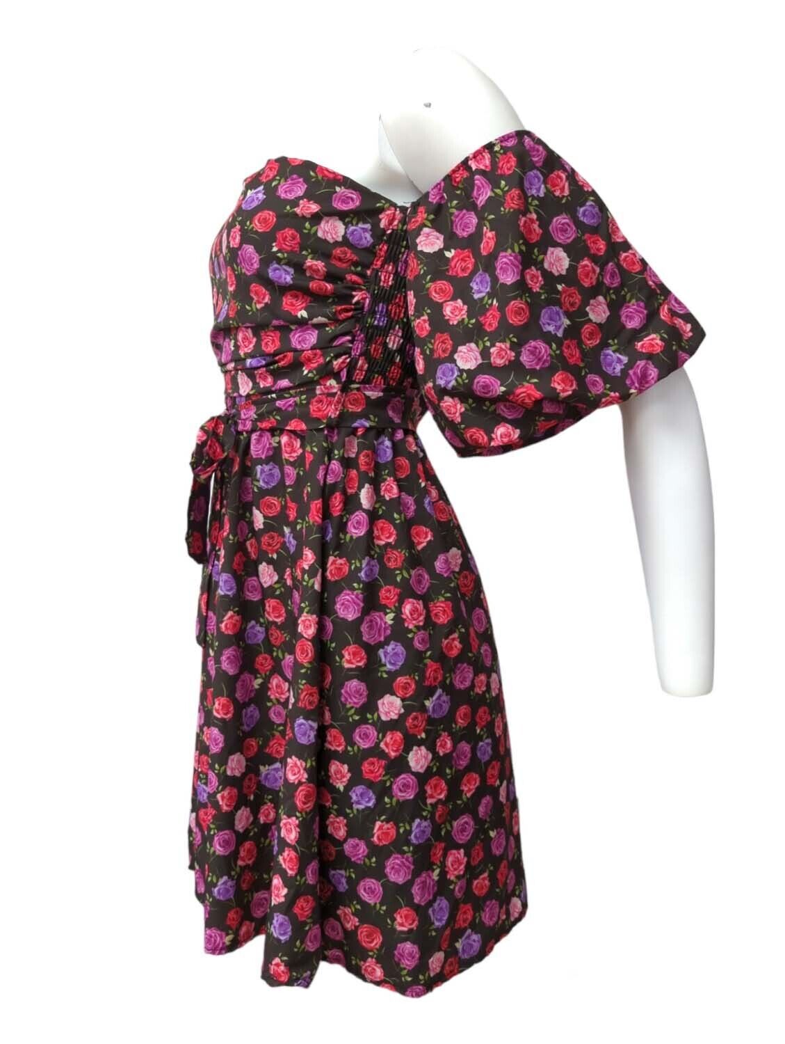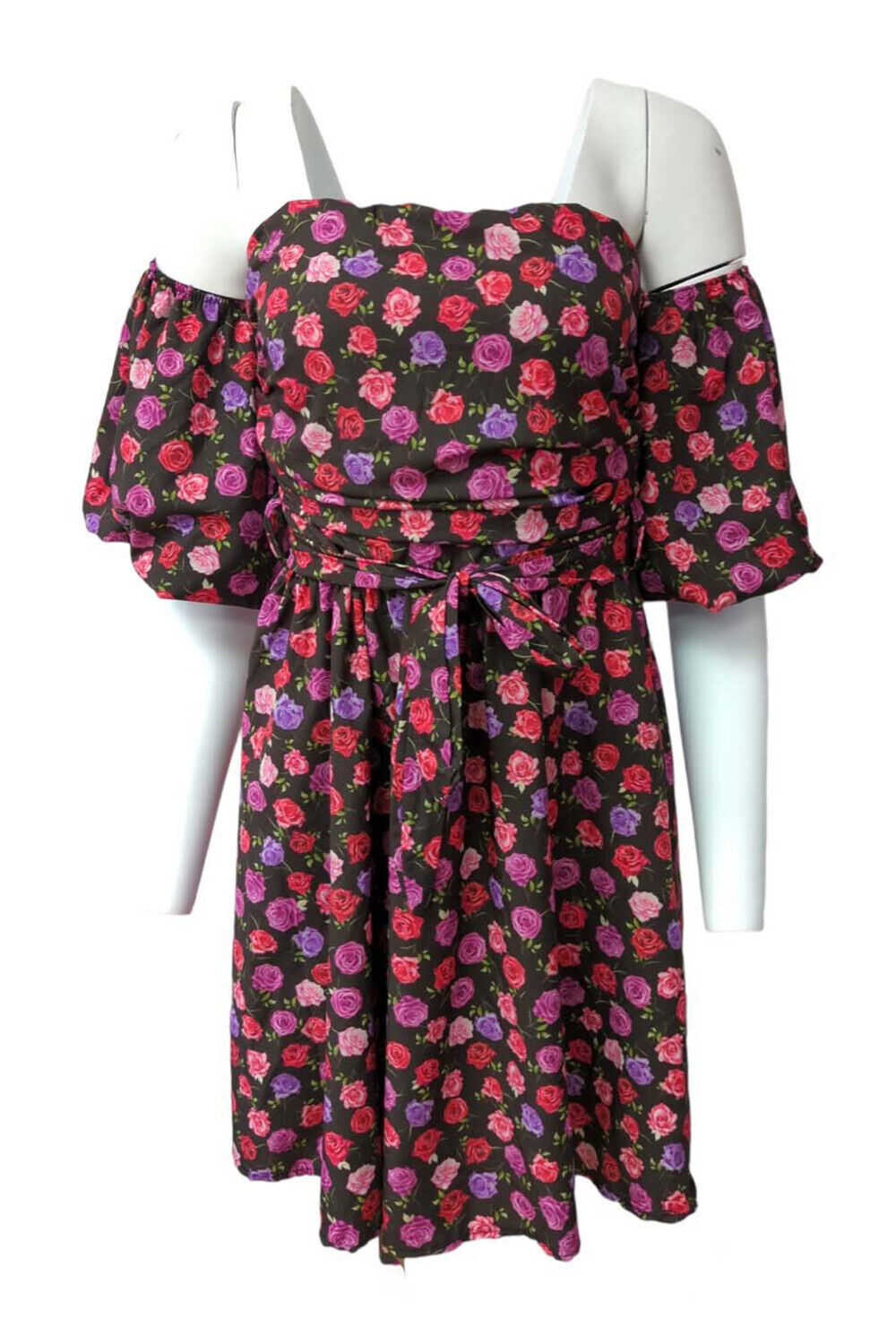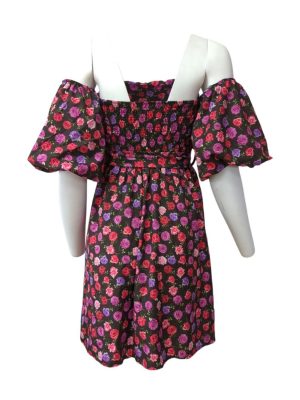 Off-Shoulder Dress Gathers Puff Sleeves Classic Knee Length Printed Size S