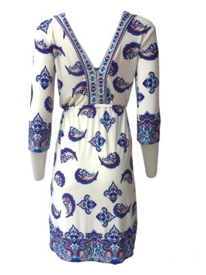 Paisley Print Dress V Neck Elastic Waisted Midi Half Sleeve Size S/M