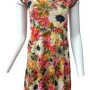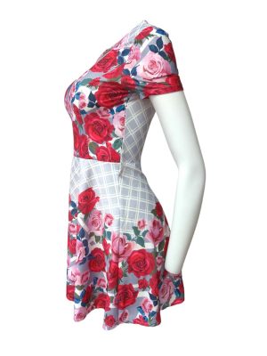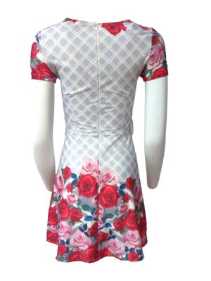 Pink Floral A-Line Dress Padded Cups Short Sleeves Summer Skirt Size S
