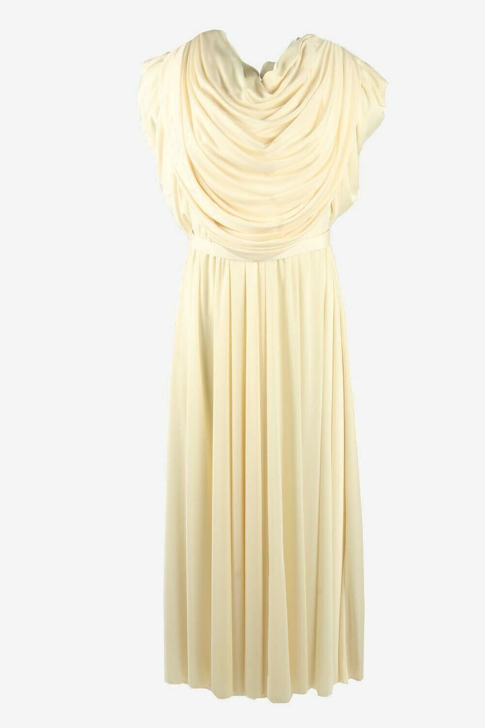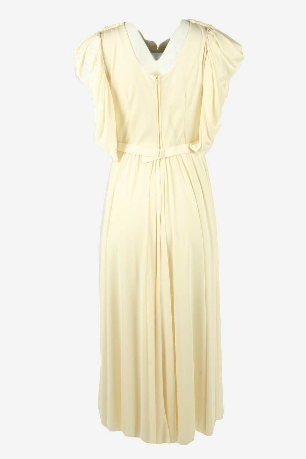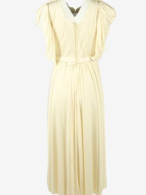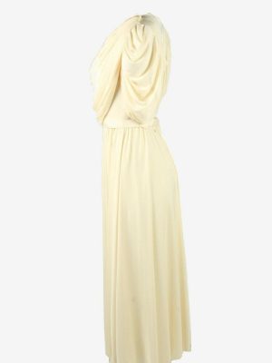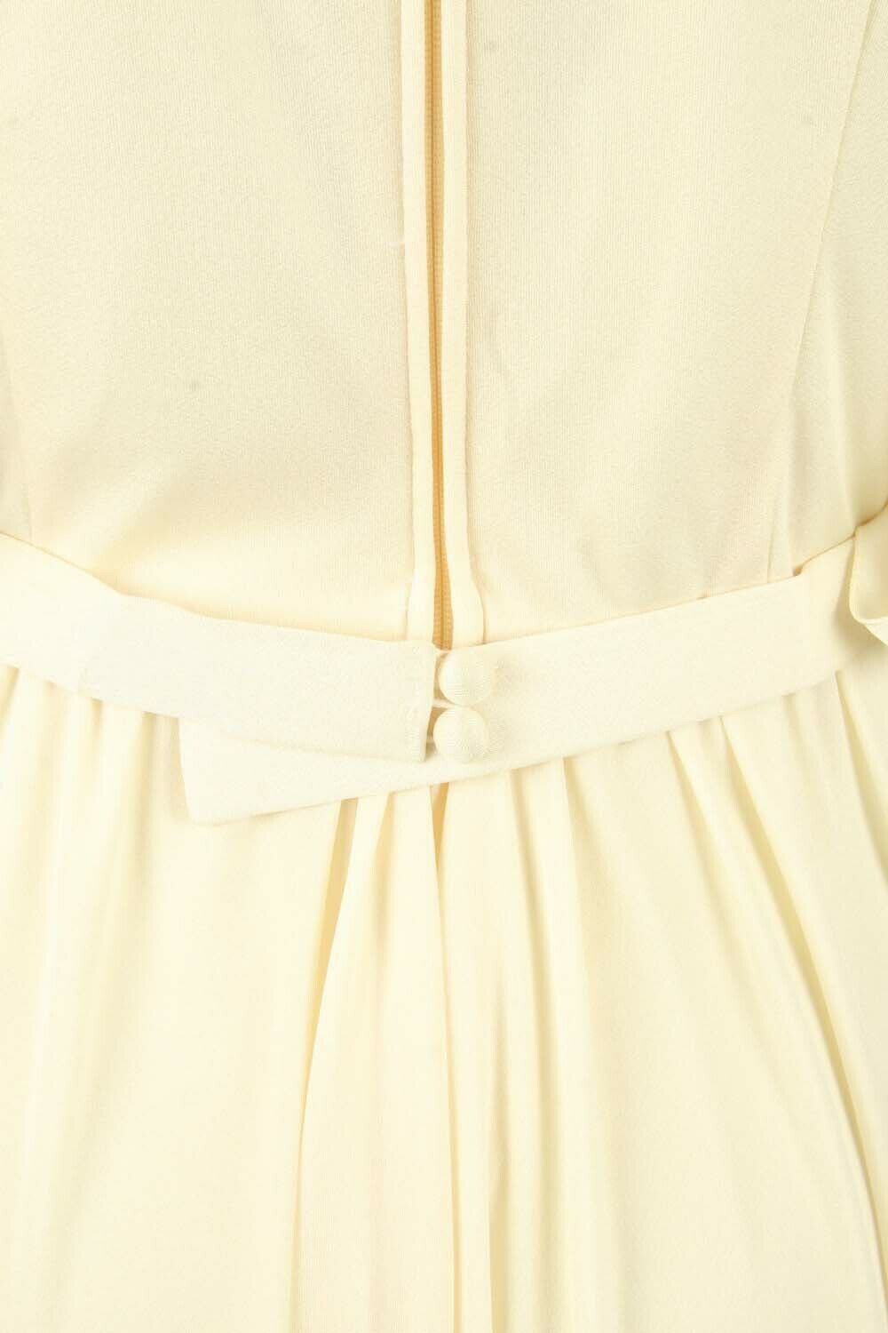 Plain Maxi Dress Vintage Puff Sleeve Belted Elegant 90s Beige Size 16