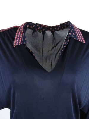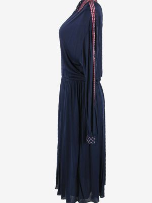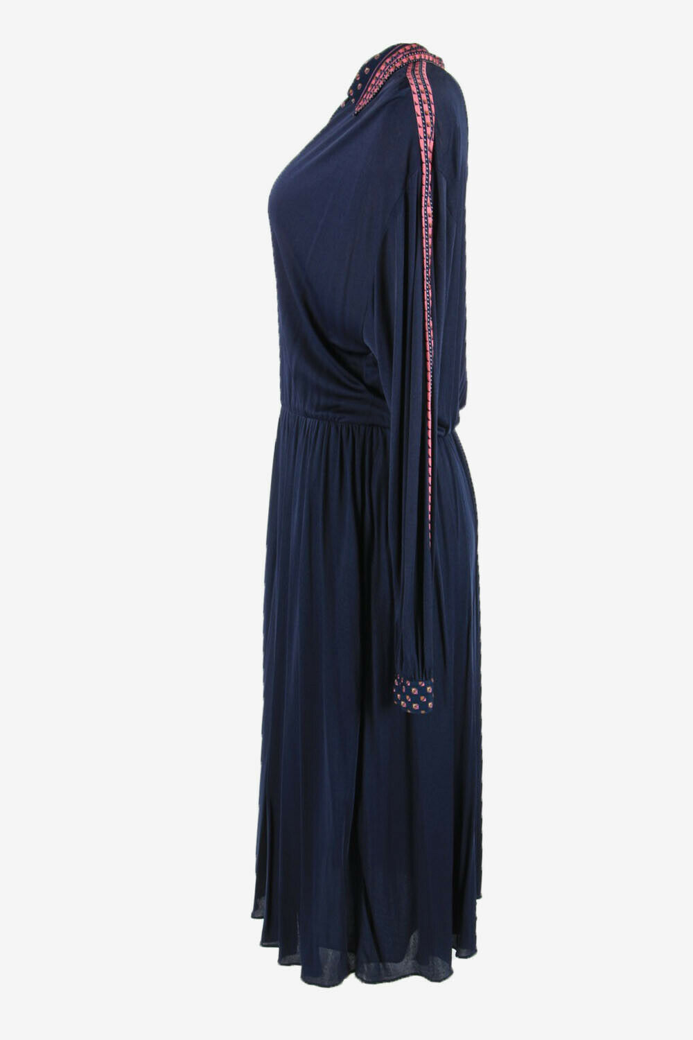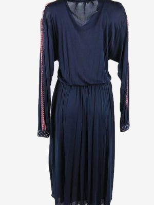 Maxi Dress Vintage V Neck Casual Retro 80s Navy L